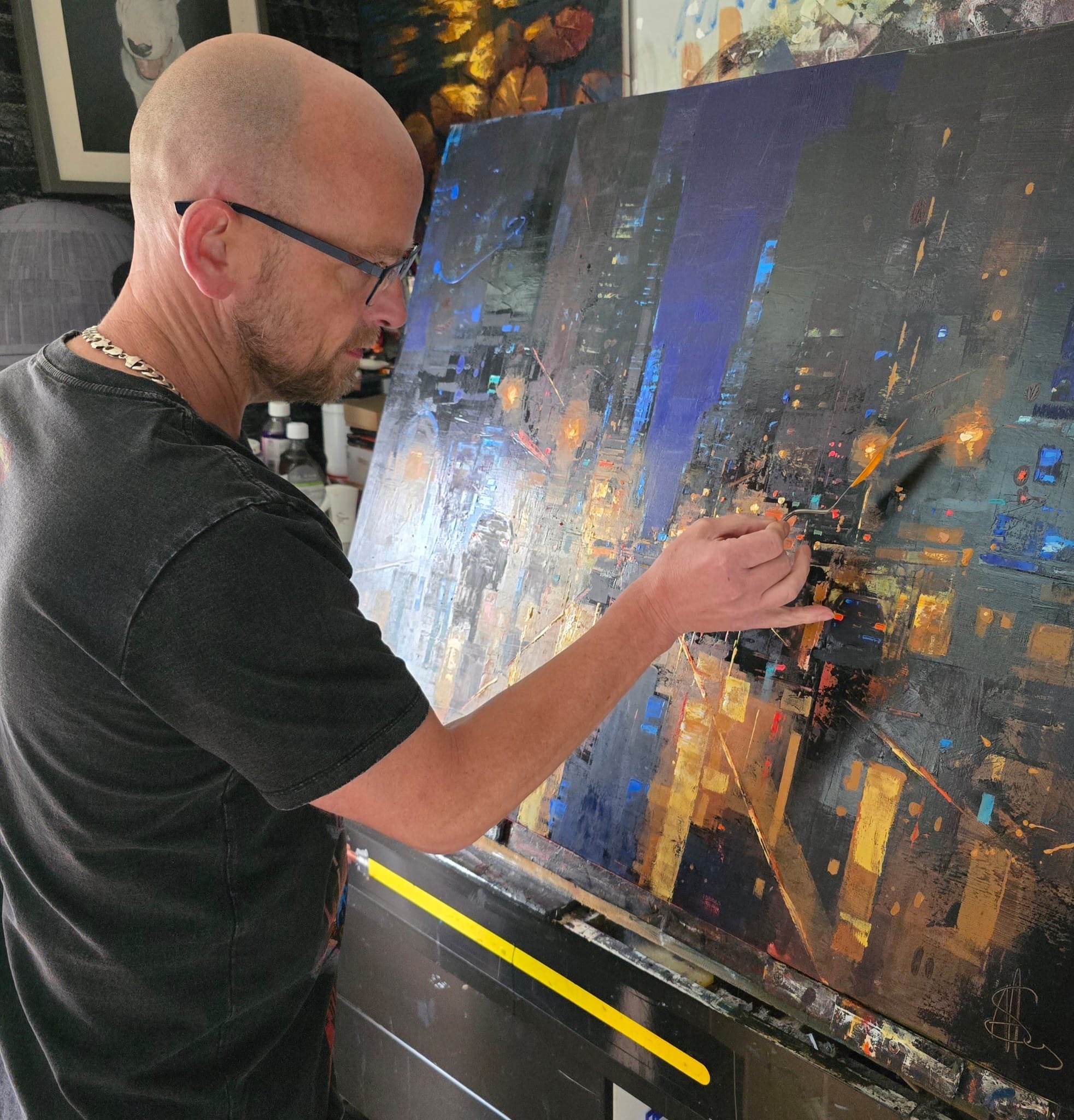 Best known for his evocative cityscapes, Somers’ artwork balances intimacy and movement, often capturing fleeting moments of light in familiar urban settings.