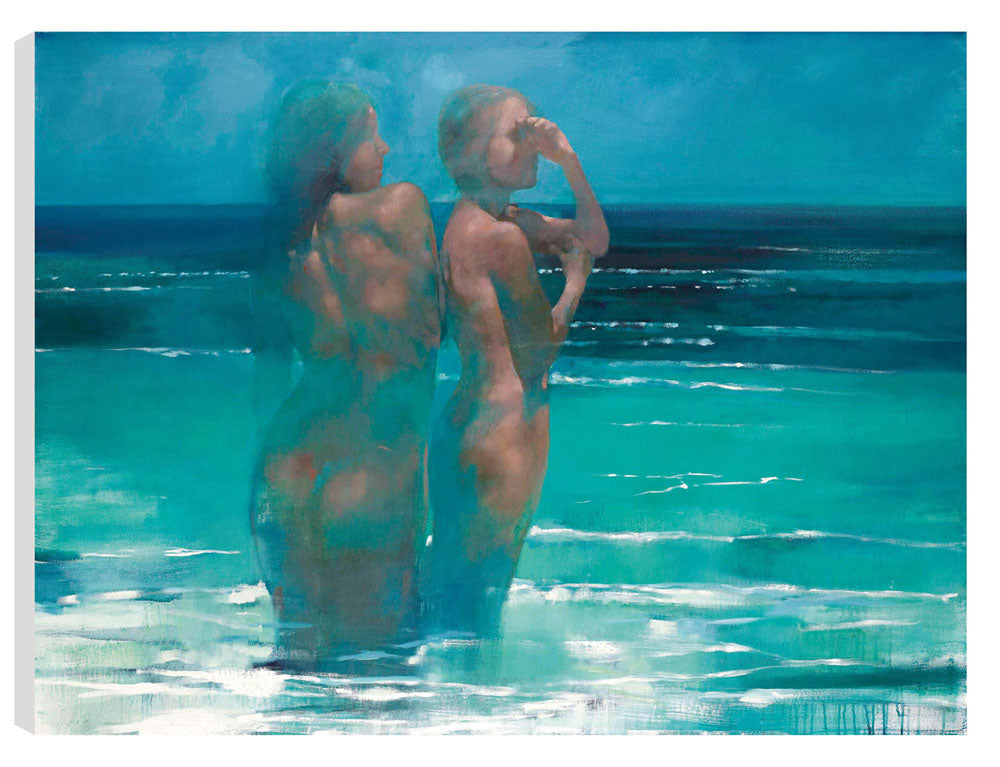Bill's underwater figures are accentuated by the cool, dark tones of the ocean reef, with their poses depicting a freedom from the constraints of gravity.