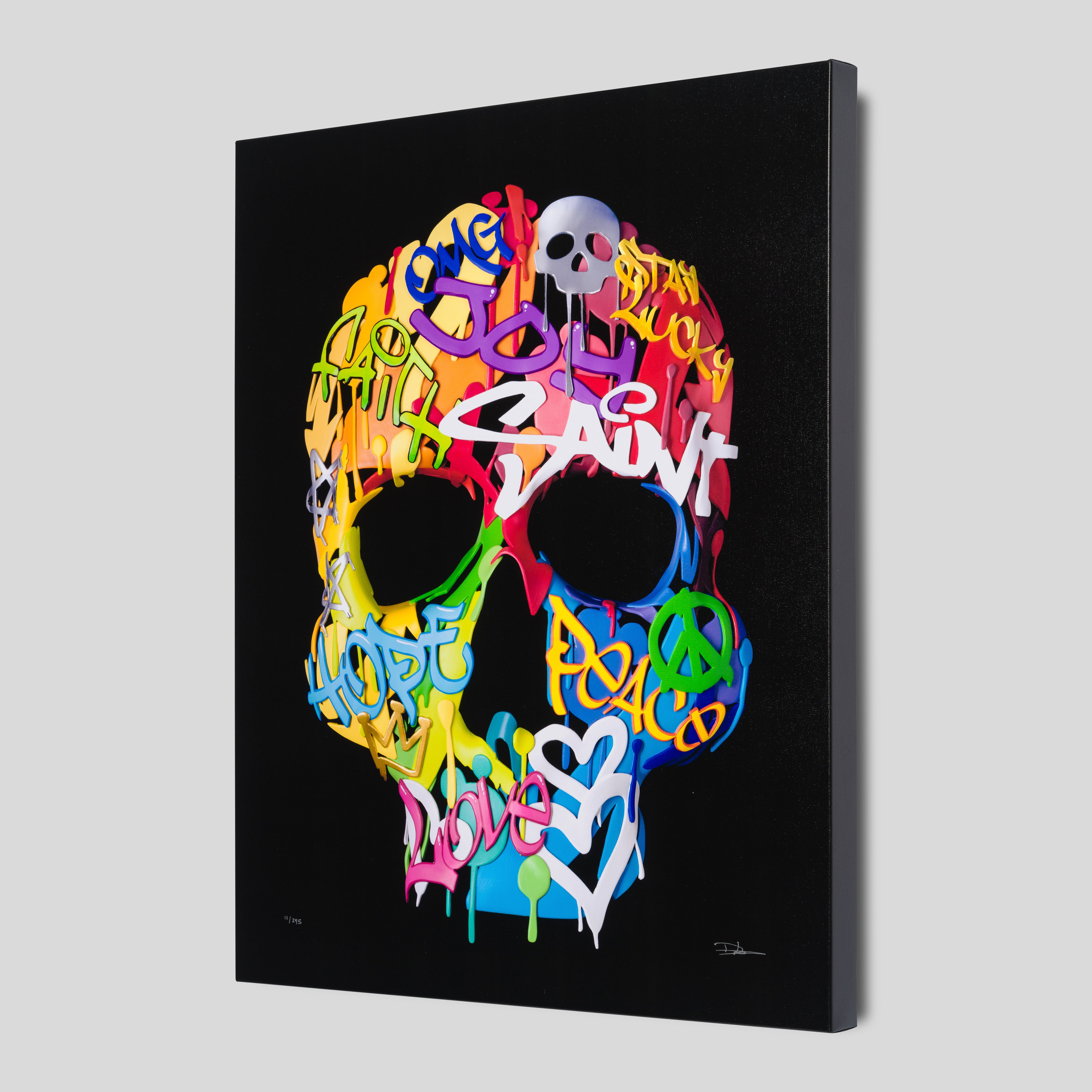 Leading the pack is Dan Lane, whose graffiti-inspired collection, In The Empty Spaces, translates elements of this controversial subculture for a provocative release of two hand-signed limited edition prints. The London-based artist, who once created art under his own moniker of Mechanica, has defaced his signature skull with motifs from street art genres, including the interlocking letters and symbols of Wildstyle and the harmony of Abstract.