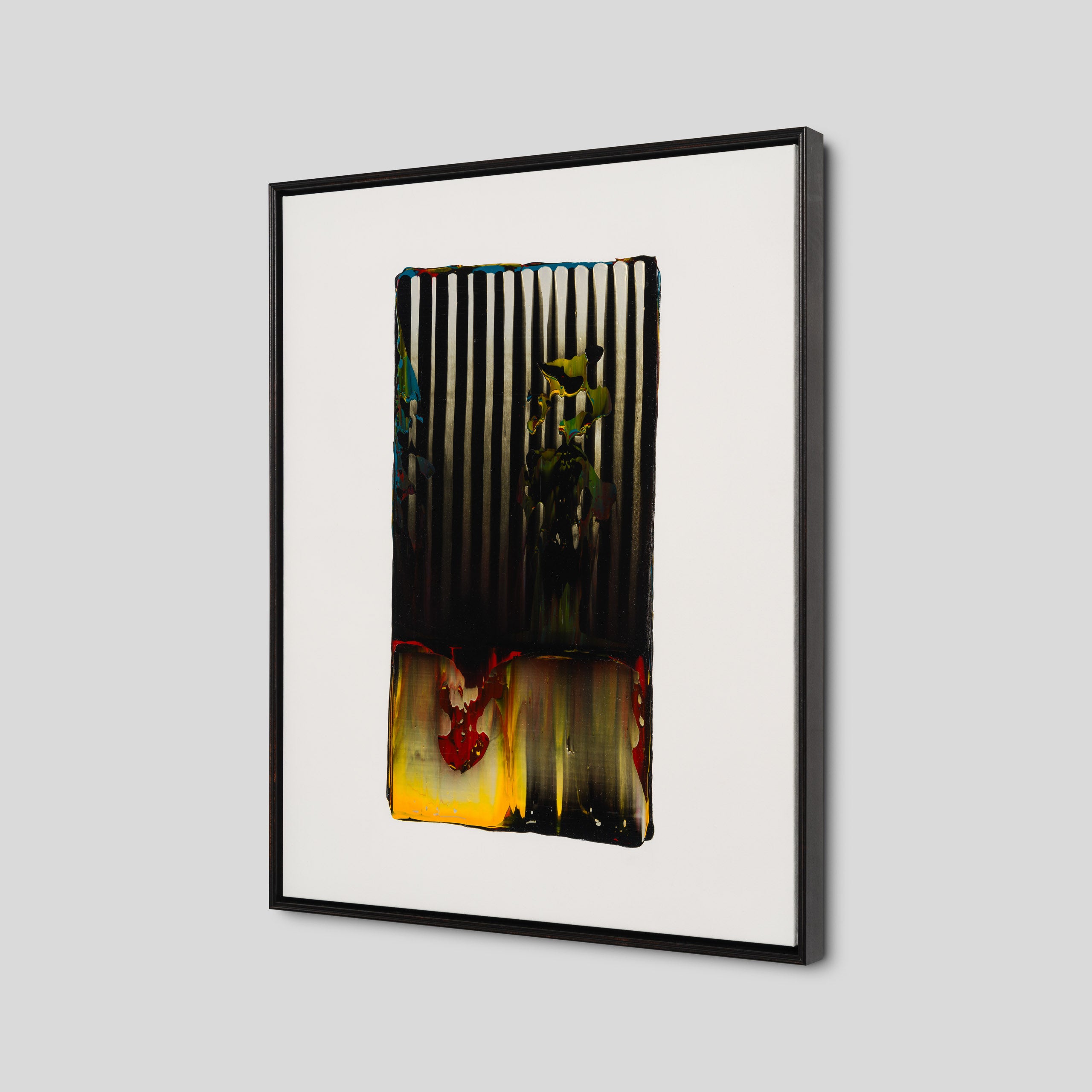 Every aspect of Paulo Ferreira's remarkable life can be seen in each piece of art he creates. His paintings have a distinct abstract minimalist style, heavily experimenting with the use of light and shadow. Working predominantly with high contrast colours, Ferreira explores the contrast between his early life and his life today. He creates his paintings in such a way that with every change of light and angle, you see something completely different. Ferreira says his artwork takes a 'holistic view of creativity', encompassing his relationships with religion and spirituality. The art is both defined yet undefined, leaning into the fluidity within Ferreira himself.