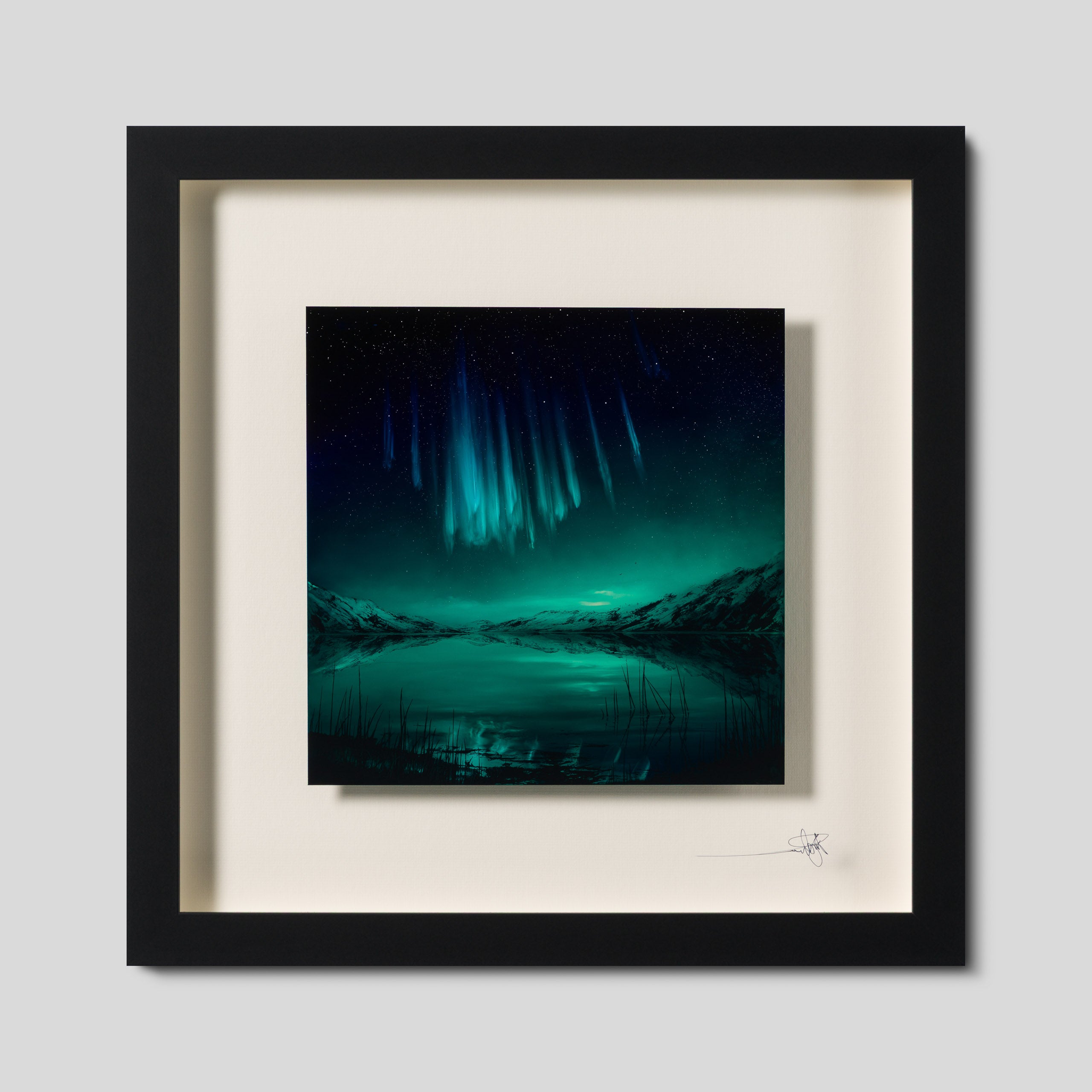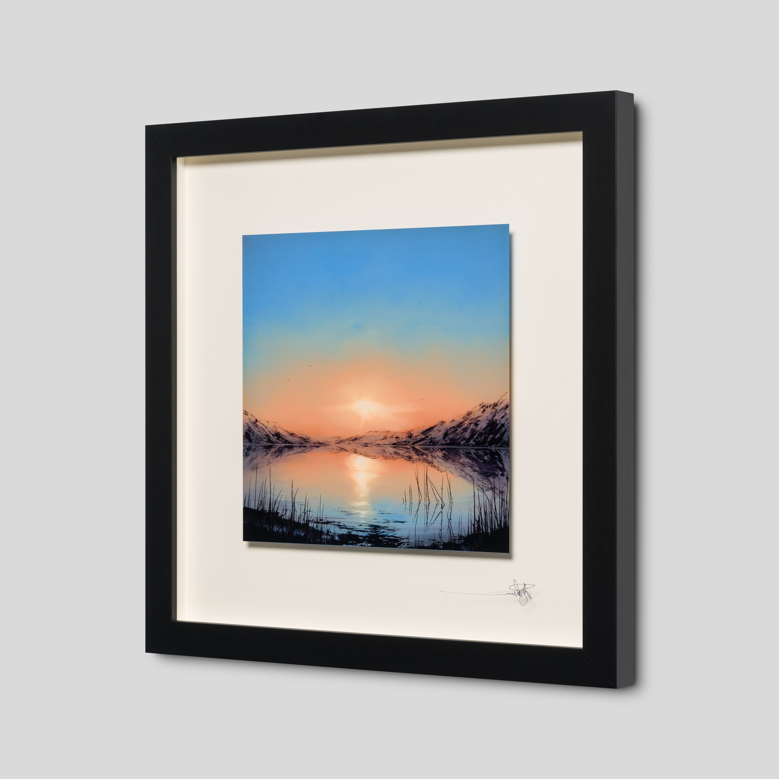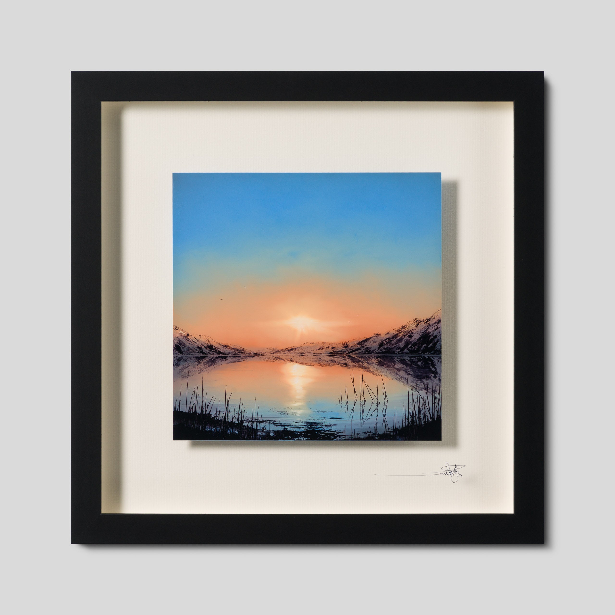 Each of the paintings captures the same landscape, observing how one scene can change so vastly throughout the days and months. Although the viewpoint of each piece may be the same, each has its own mood and personality. Where some may feature the cool glow of twilight, another may capture the warmth of the setting sun. After Rowan originally painted the foreground, his process was replicated in a reverse giclée printing technique, applied in layers to the glass. The artist has then meticulously hand-painted each landscape using his innovative reverse painting technique to create a collection of stunning unique artworks which follow the moments of change in a single landscape and the feelings of awe they inspire. Inspired by the wild, untouched landscape of Loch Hourn in Scotland, Richard Rowan has captured its dynamic beauty throughout this collection. Rowan found the loch to be one of those rare places where you can observe almost every kind of sky, from auroras that light up the night, to the Milky Way stretching overhead, to fiery sunsets, soft sunrises and dramatic rolling clouds. Finding that the landscape shifted minute by minute, the artist felt compelled to paint moments that others might miss, allowing the viewer to stop and take the time to appreciate the wonder of the world around us.