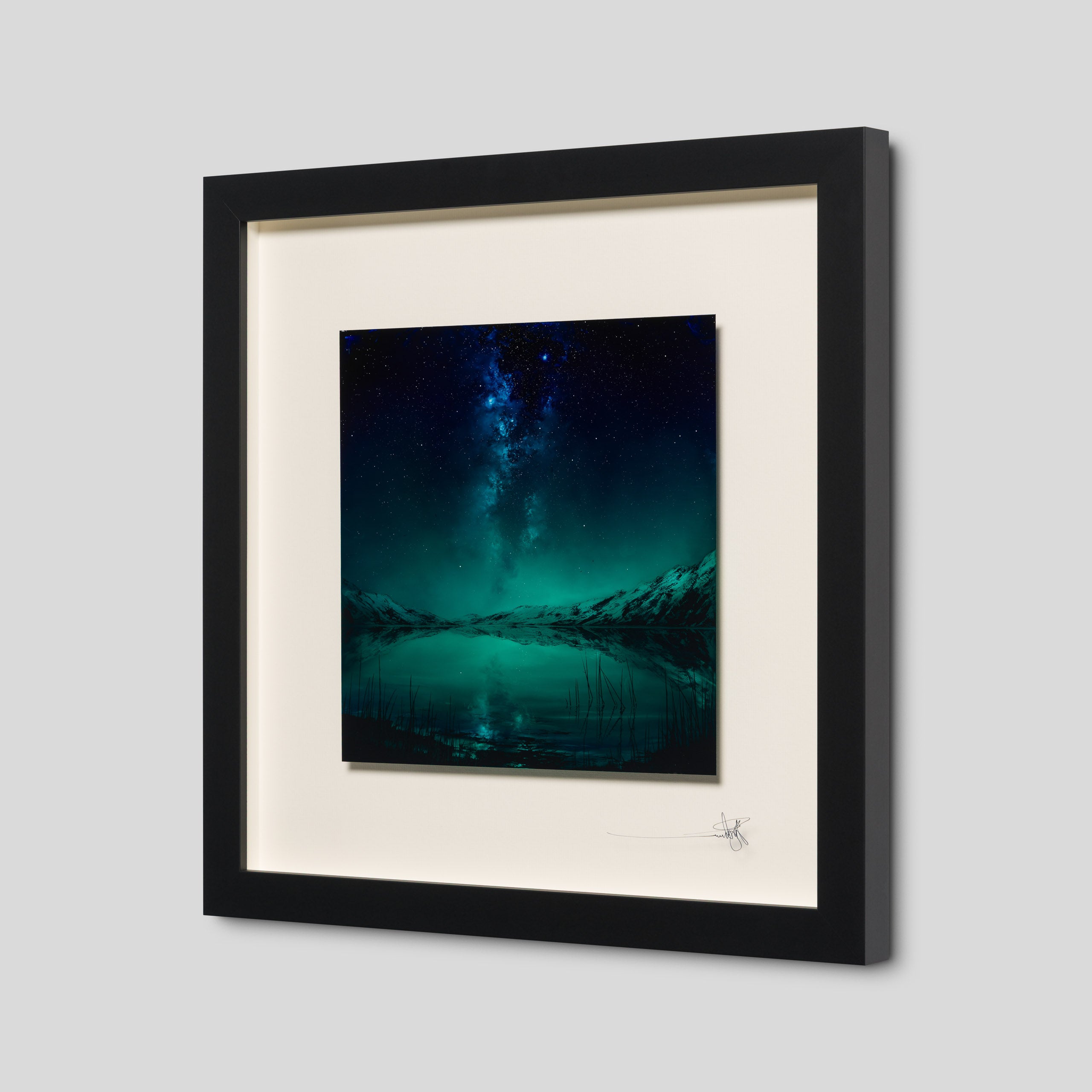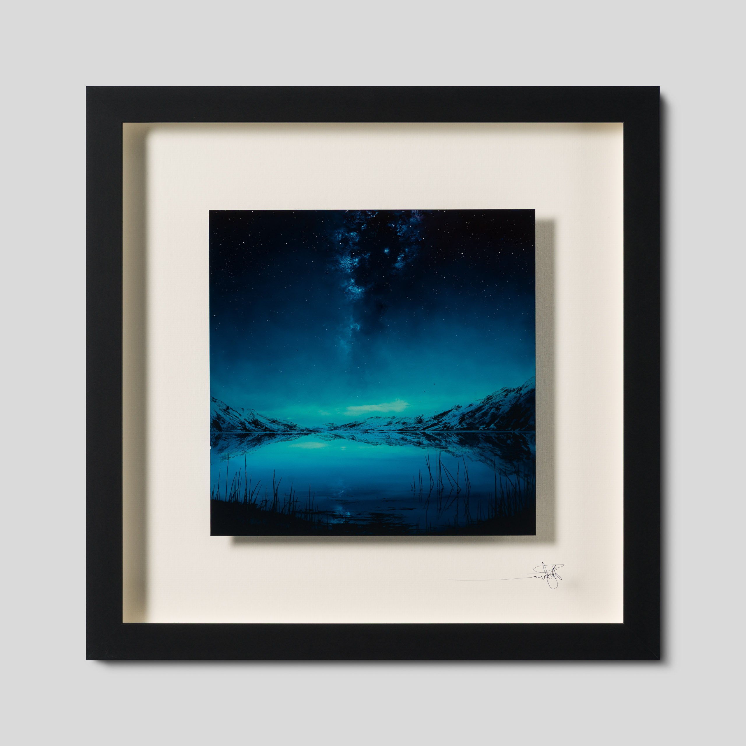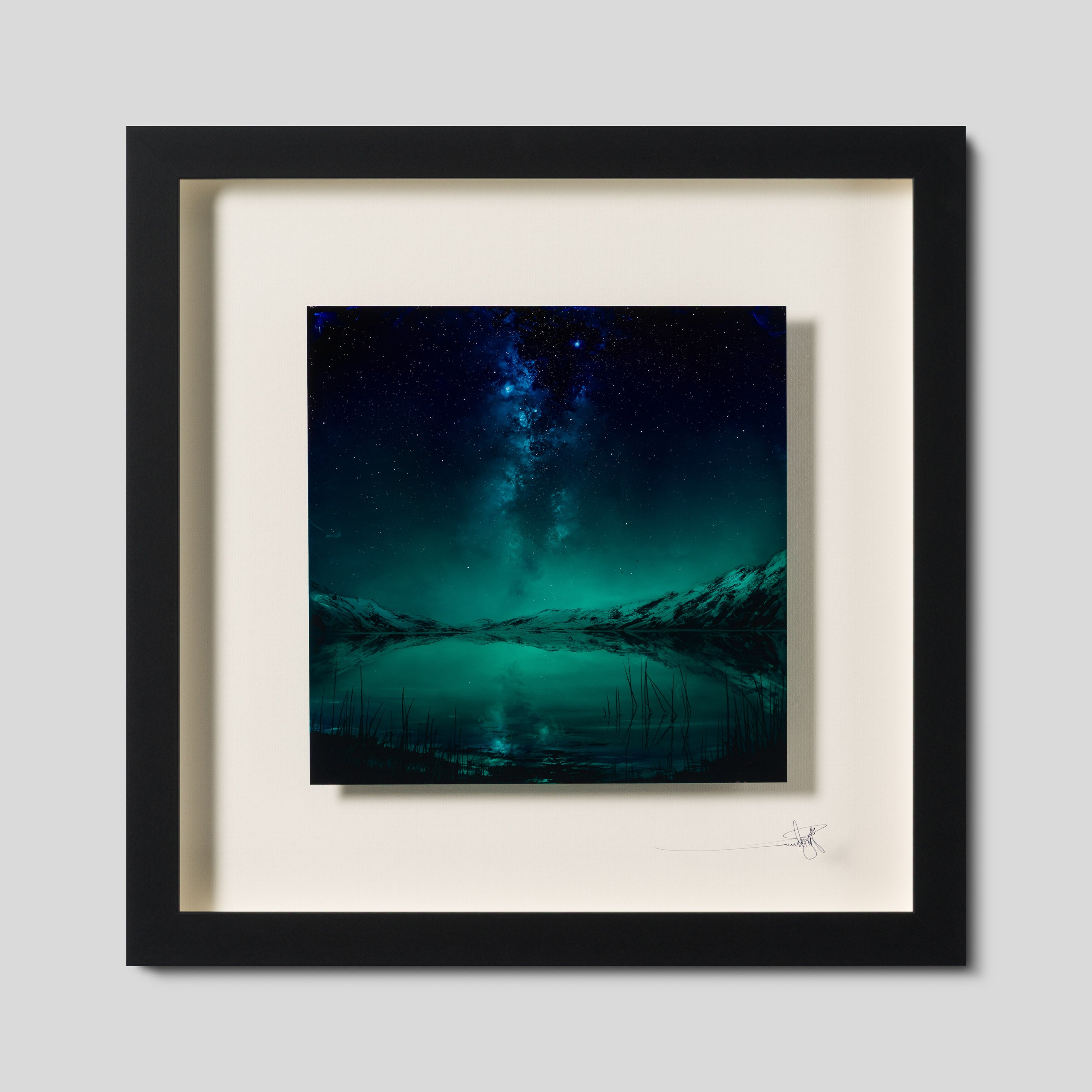 Each of the paintings captures the same landscape, observing how one scene can change so vastly throughout the days and months. Although the viewpoint of each piece may be the same, each has its own mood and personality. Where some may feature the cool glow of twilight, another may capture the warmth of the setting sun. After Rowan originally painted the foreground, his process was replicated in a reverse giclée printing technique, applied in layers to the glass. The artist has then meticulously hand-painted each landscape using his innovative reverse painting technique to create a collection of stunning unique artworks which follow the moments of change in a single landscape and the feelings of awe they inspire. Inspired by the wild, untouched landscape of Loch Hourn in Scotland, Richard Rowan has captured its dynamic beauty throughout this collection. Rowan found the loch to be one of those rare places where you can observe almost every kind of sky, from auroras that light up the night, to the Milky Way stretching overhead, to fiery sunsets, soft sunrises and dramatic rolling clouds. Finding that the landscape shifted minute by minute, the artist felt compelled to paint moments that others might miss, allowing the viewer to stop and take the time to appreciate the wonder of the world around us.