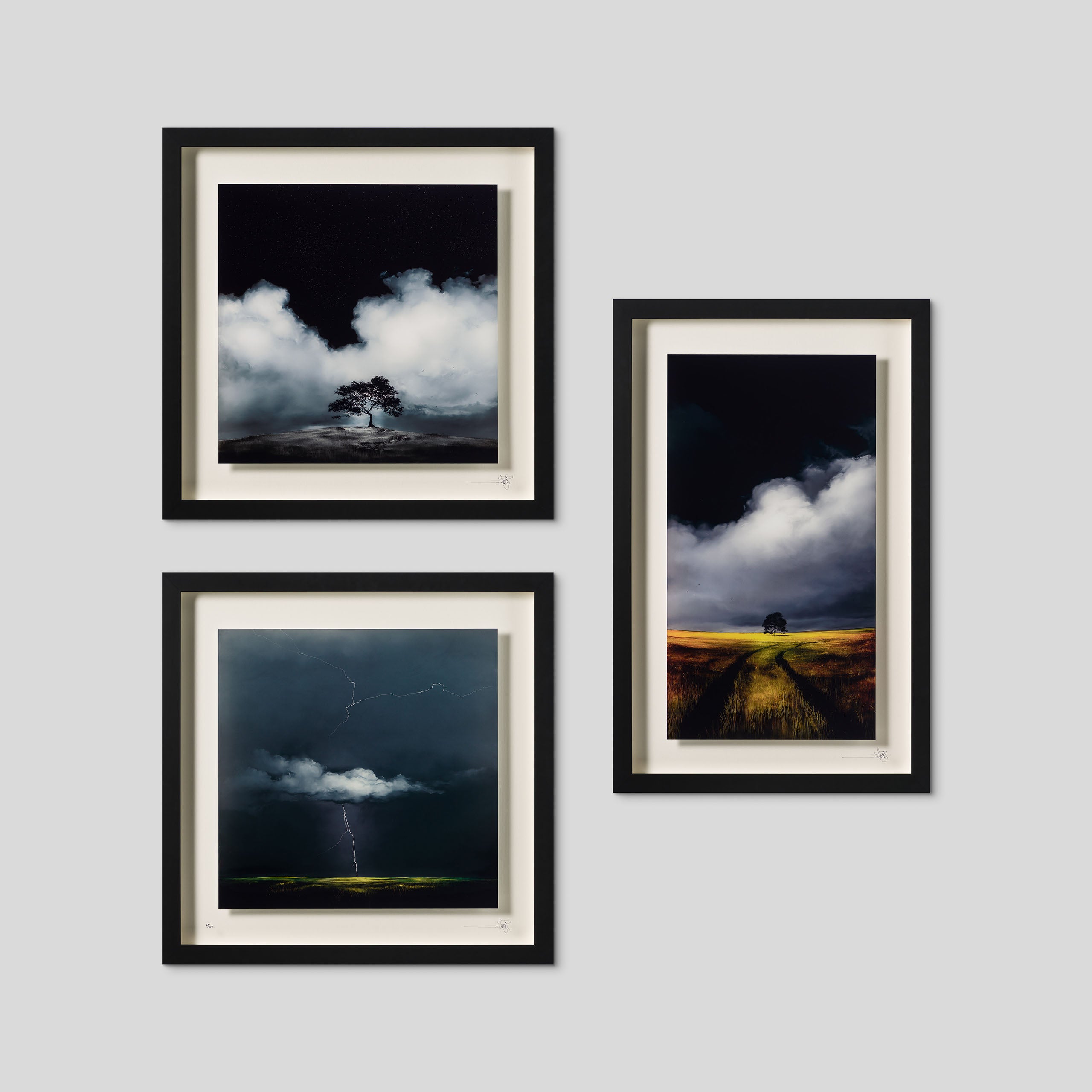 Describing his new artworks as “nature’s silhouettes”, Richard Rowan has returned with three additions to his popular Twilight series. Created using his signature reverse painting-on-glass technique (find out more about this here), the artist has captured the majesty of the sky from a completely different perspective. The hand-signed giclée prints also feature touching references to his family. Within the pieces, Richard, his wife and his two children are represented by trees or birds. As with all of his art, the pieces were created whilst listening to a specific song. Click on each individual artwork below to discover its accompanying soundtrack.