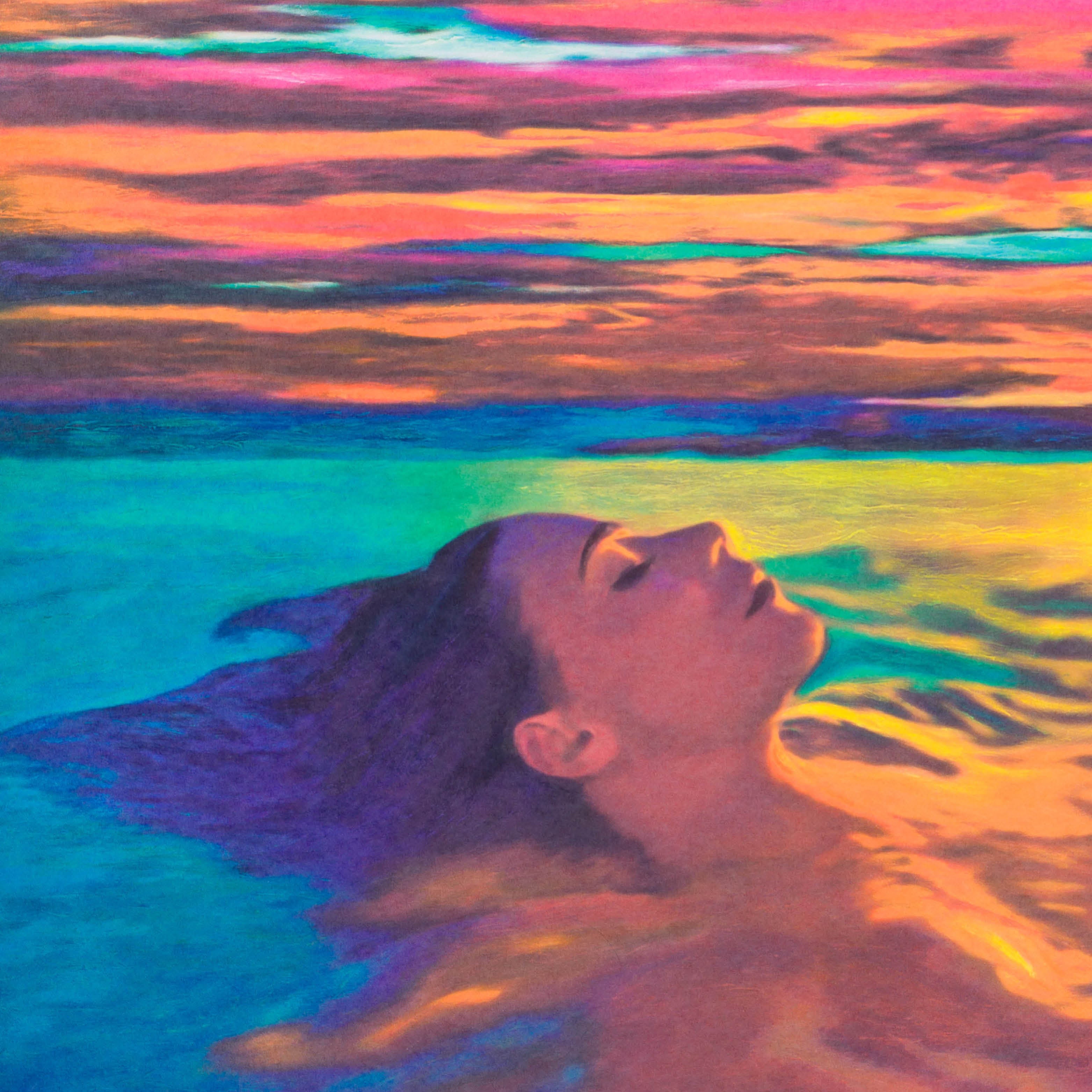 The water acts as a stage – a mirror and a veil all in one – balancing the interplay of revelation and concealment. The skin shines and contours blur, as Gill uses a luminous palette and layered brushwork to create reflections and distortions that are both photorealistic and atmospheric, making the subjects feel tangible yet mysterious.
