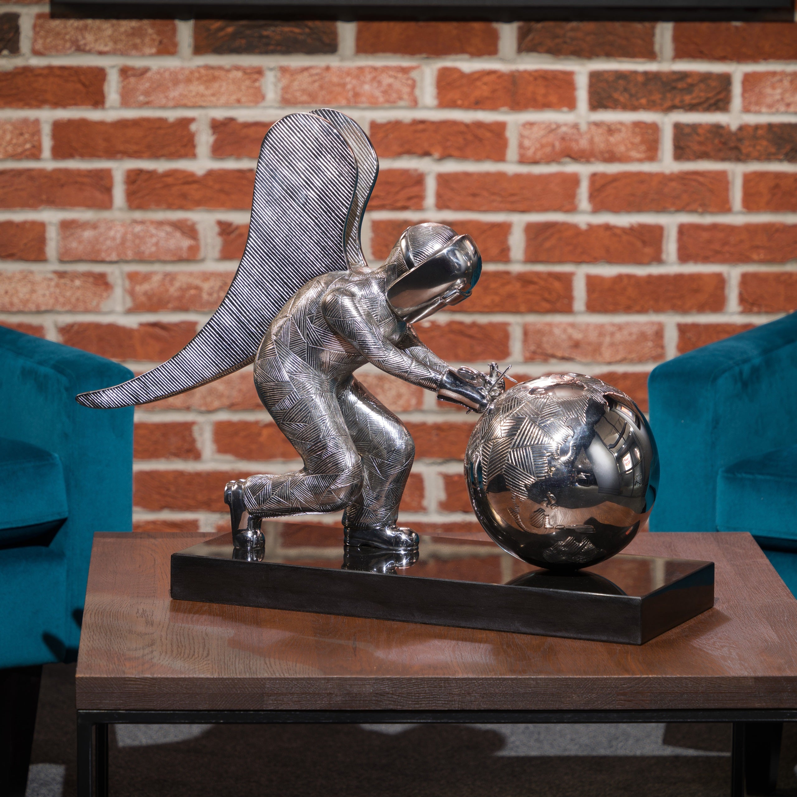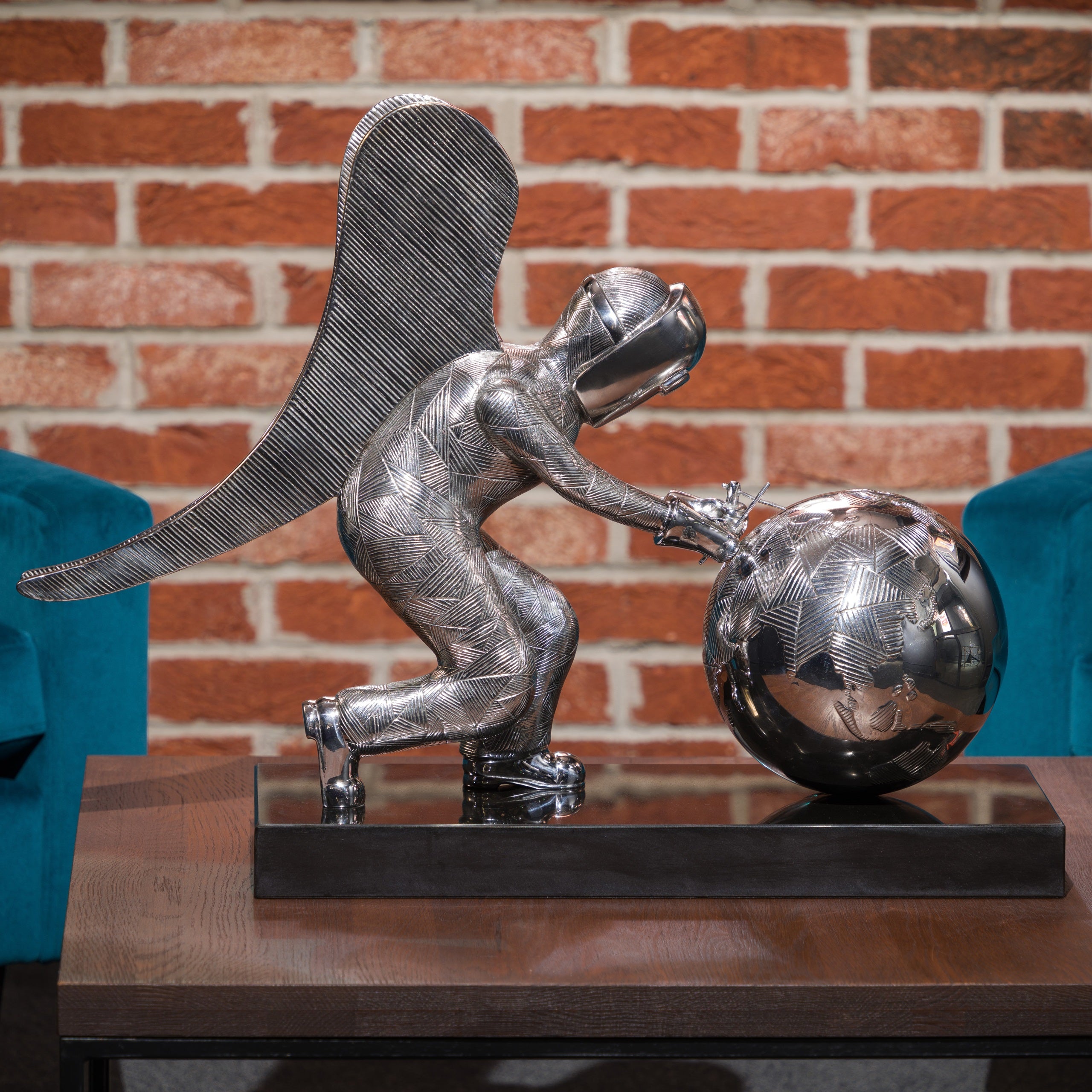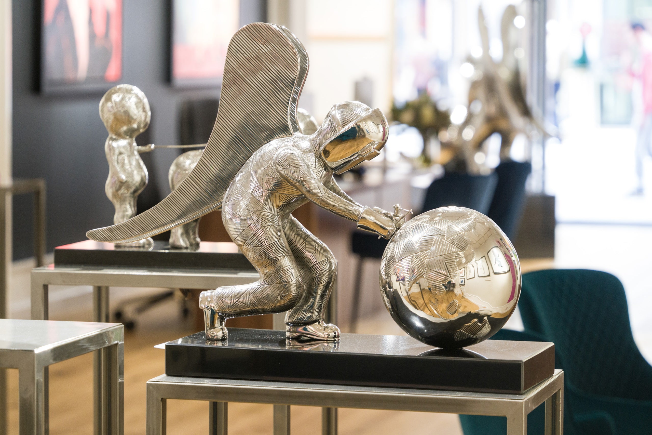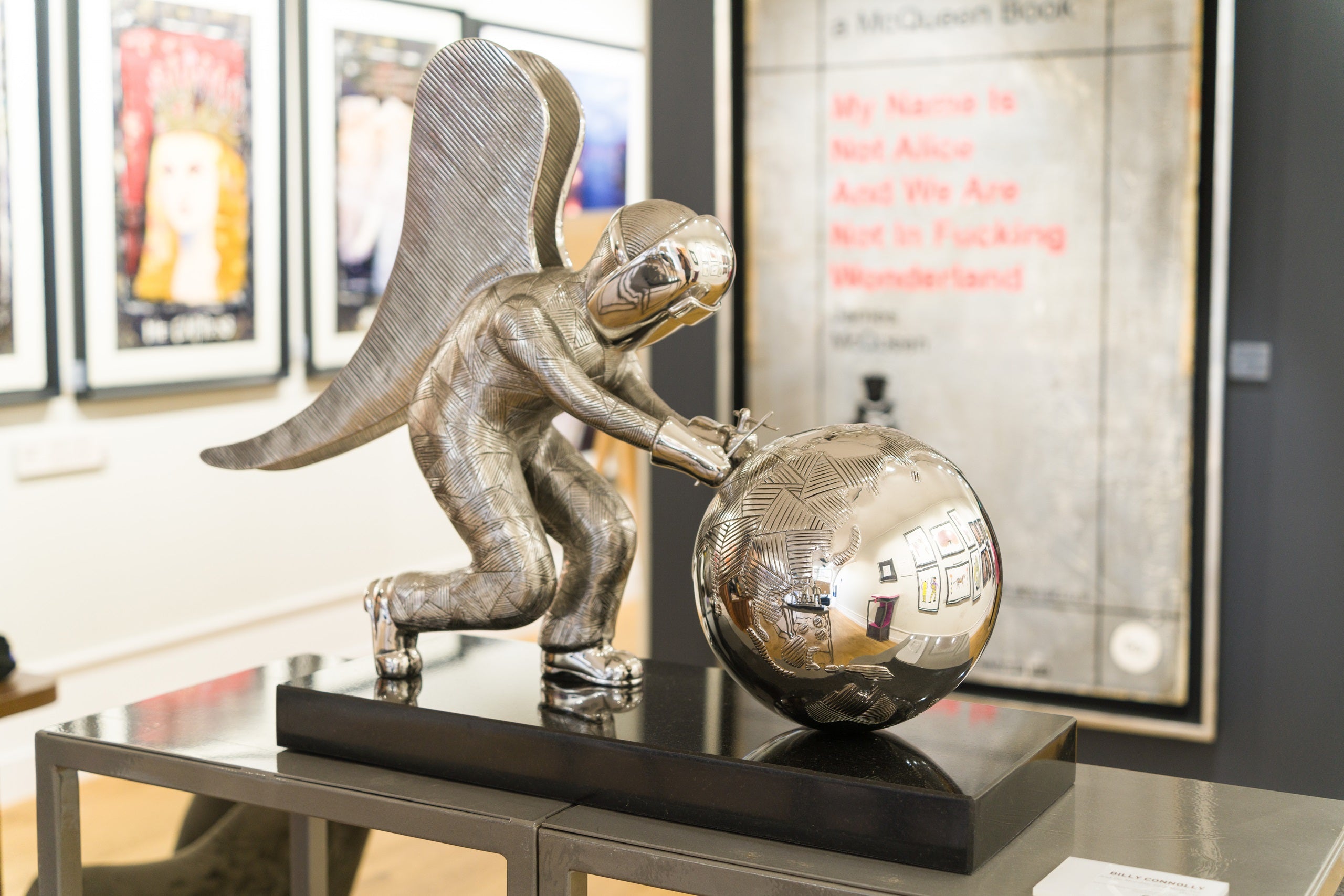 This piece is a Stainless-Steel Sculpture on Black Granite Base. For an extra £1000, this limited edition can also be purchased in a set alongside the limited edition Giclée.
