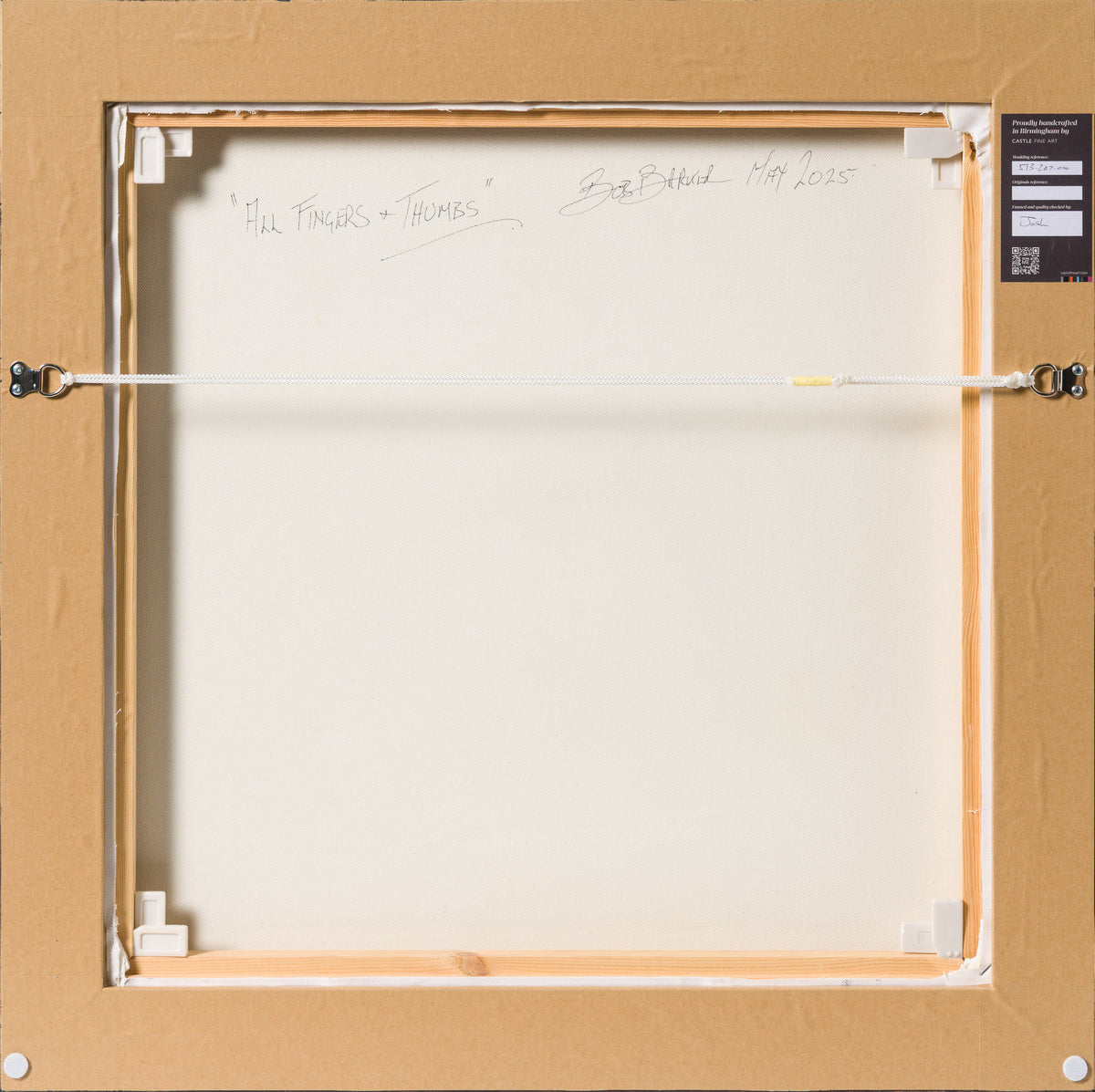 An original artwork by Bob Barker, ‘All Fingers & Thumbs’ was created as a heartfelt tribute to the late Lawrie Williamson (1932–2017). The celebrated British artist was known for his evocative oil paintings, watercolours, pencil sketches, and occasional pastel work, often depicting scenes from rural England and Irish life. Lawrie, a cherished friend and artistic companion of Bob's, shared countless days in the studio with him—painting together, exchanging ideas, and enjoying the easy rhythm of creative camaraderie.