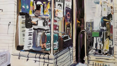 In this latest chapter in Dylan's visual chronicle of United States scenery, we see more of residential American living. People walking on tree-lined streets, musicians playing music outside a suburban home; this carefully curated collection of artwork offers a new perspective from Dylan in his unfolding portrait of America.
