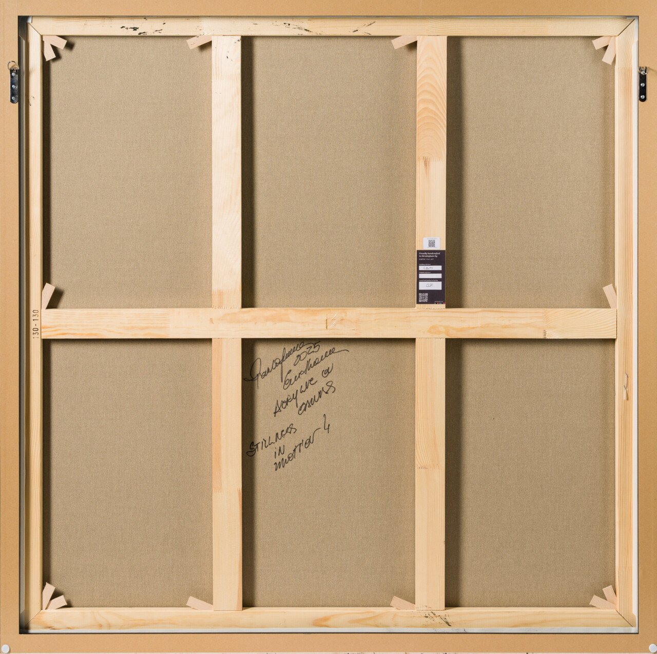 A testament to the artist mastery of abstraction art, ‘Stillness in Motion IV’ carries a peaceful, almost spiritual quality. Exploring the interplay between movement, balance and serenity, the raw beauty of the artwork is enthralling, with every drop of colour masterfully placed.