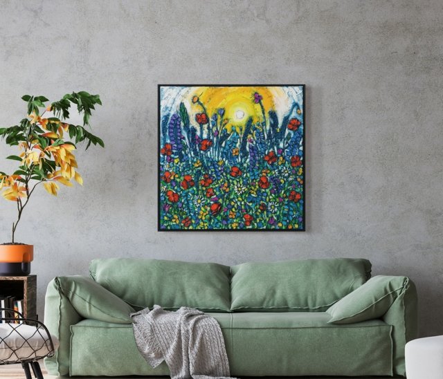 One of the most exciting female artists in the UK today, Scarlett Raven’s recognised for the emotional intensity and heavy texture in landscape originals that standout in any collection. Bursting with bright colour and incredible texture, this beautiful original artwork not only showcases her own signature style, but also the art historical genre of impasto painting. With stylistic influences from Vincent Van Gogh, Anselm Kiefer, Gustav Klimt and David Hockney, her emotive works are inspired by her deep personal connection with nature.