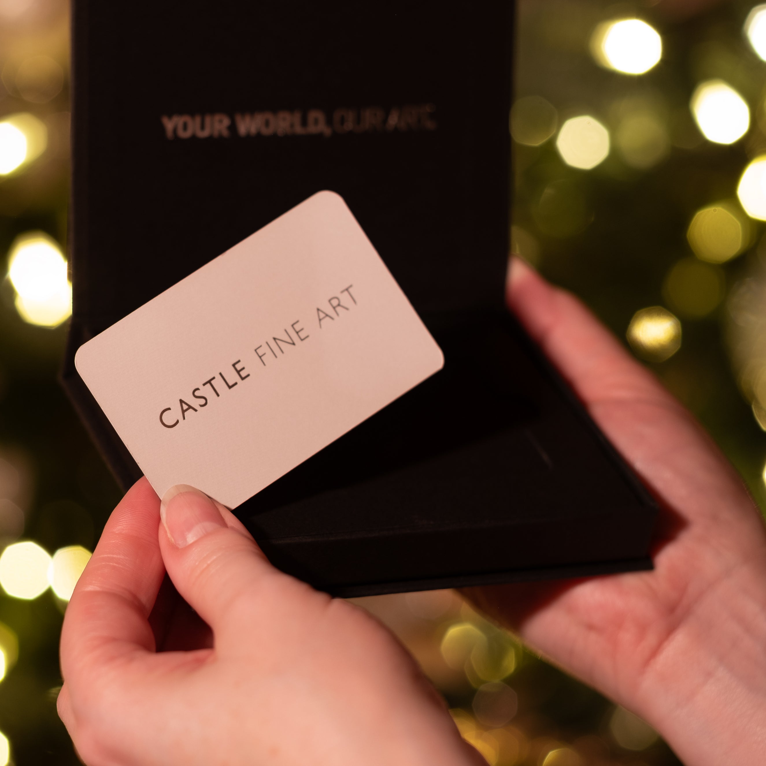 We have e-cards that can be sent digitally, or we can send them an elegantly-presented card in the mail – then they can spend your gift in our galleries nationwide or at castlefineart.com.