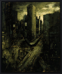 Mixing custom palettes with a refined use of light and shadow, Somers crafts both mood and narrative. His paintings carry a significant sense of texture and movement, echoing the fast-paced atmosphere for which cities like London and New York are known. Deliberate brushstrokes and layered oils build a tangible environment of mist, glow, and quiet tension.
