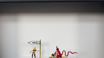 For this special collection, Joly has created two different editions for each title which not only vary in size, but have different edition sizes: the Collector's edition, a larger artwork with an edition number of 100 and featuring more of his iconic figurines, while the Conceptual edition is smaller in size and edition number of 295.