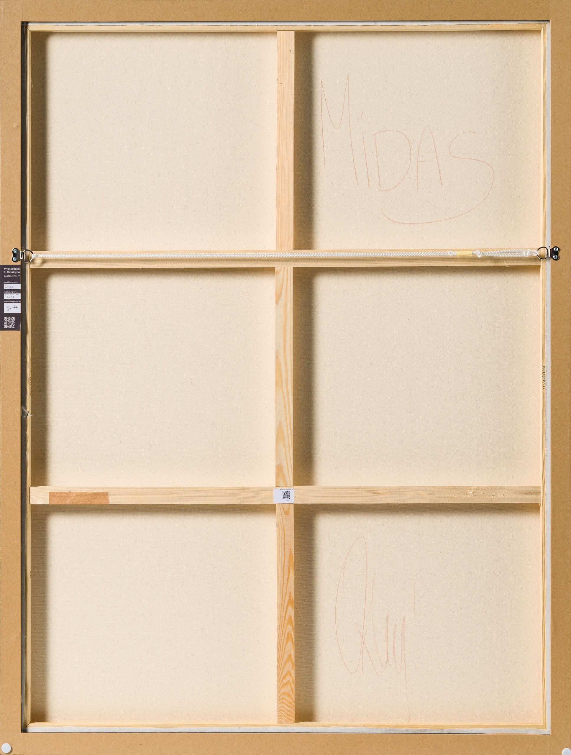 Introducing a new dimension to his iconic animals, ‘Midas’ exhibits a lion painted almost entirely in brown tones. Oxley has made a change from his usual kaleidoscopic colour palette yet instils his usual level of incredible detail into this painting.
