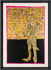 After his hugely successful Friends & Heroes and Five releases of portraits, Johnny Depp has continued to delve deeper into the self, and his subconscious, in his series of limited edition works, The Bunnyman Genesis. In this collection, an intriguing, silhouetted figure stands before four different, yet parallel, realms in the collection of mixed media limited editions.Layering each composition with varying textures, contrasting blocks of colour and confident mark-making, Depp has developed a body of work which demonstrates his expressive creativity.