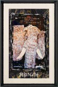 The image of the elephant holds personal relevance for Depp. This artwork is derived from a large-scale painting Johnny created in London while expecting the birth of his first child, Lily-Rose, with Vanessa Paradis. Inspired by the maternal instincts he saw in Paradis during her first steps into motherhood, and reflecting on his own approaching fatherhood, Depp picked up his paintbrushes and depicted the creature on canvas, exploring ideas of inner strength. As he said, he felt that “a veil was lifted” when he became a parent for the first time.