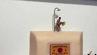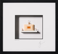 Not taking itself too seriously, ‘Talking Dirty’ depicts couples caught in compromising cheeky poses on a bar of soap. The irony Joly is famous for is achieved with the soap. Highly glossy and pristine, the soap is meant to scrub things clean, yet in this scene it’s hosting moments that are anything but proper – it’s clean and frozen in time, while the handmade figures on top suggest the opposite, intimacy, mess and mischief. This brilliant contrast makes the artwork funny, oddly charming and perhaps a little awkward.