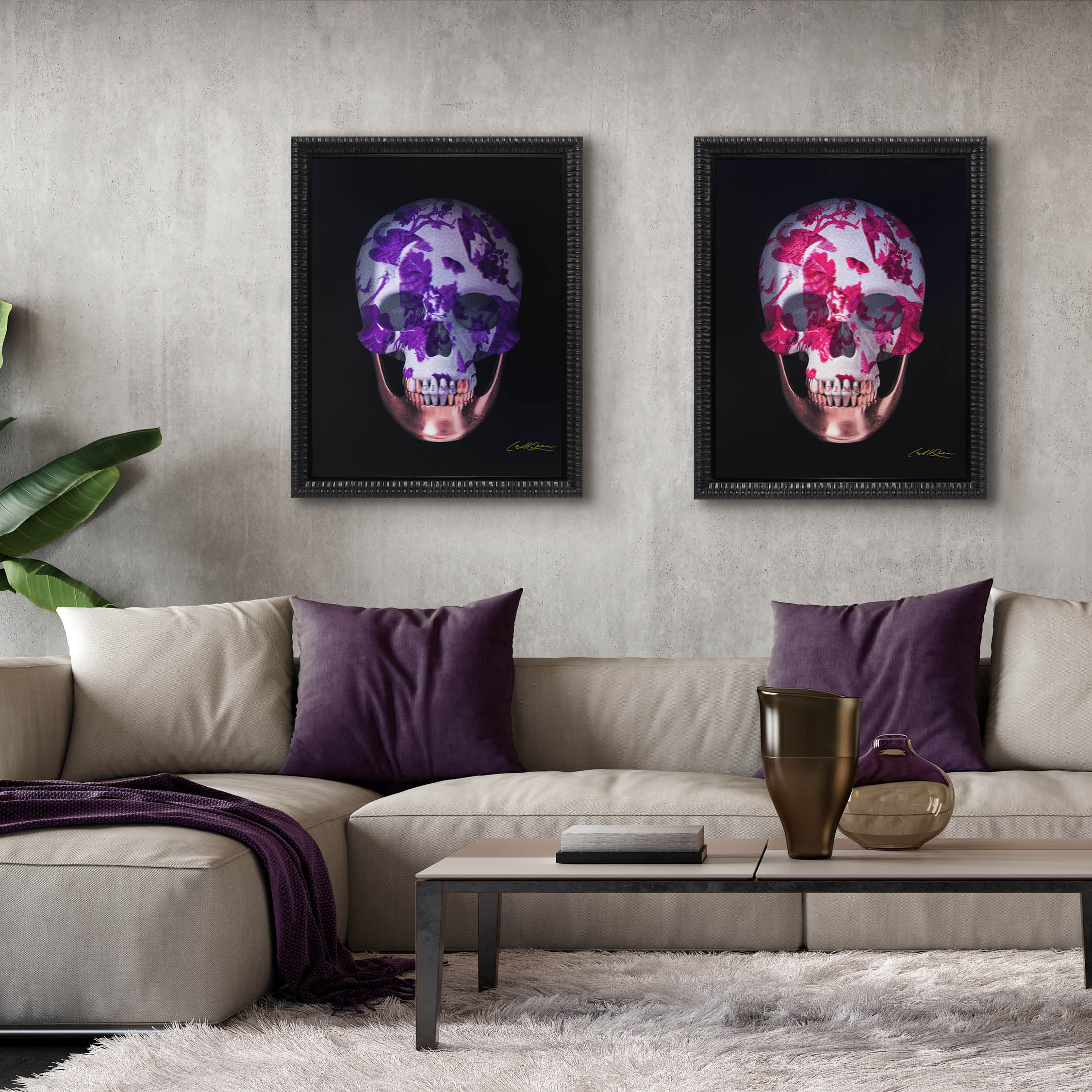 Presented as a lenticular artwork, ‘Kintsugi | Violet’ is an exquisitely ornate skull that possesses the illusion of three-dimensional depth.