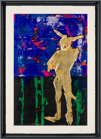After his hugely successful Friends & Heroes and Five releases of portraits, Johnny Depp has continued to delve deeper into the self, and his subconscious, in his series of limited edition works, The Bunnyman Genesis. In this collection, an intriguing, silhouetted figure stands before four different, yet parallel, realms in the collection of mixed media limited editions. Layering each composition with varying textures, contrasting blocks of colour and confident mark-making, Depp has developed a body of work which demonstrates his expressive creativity.