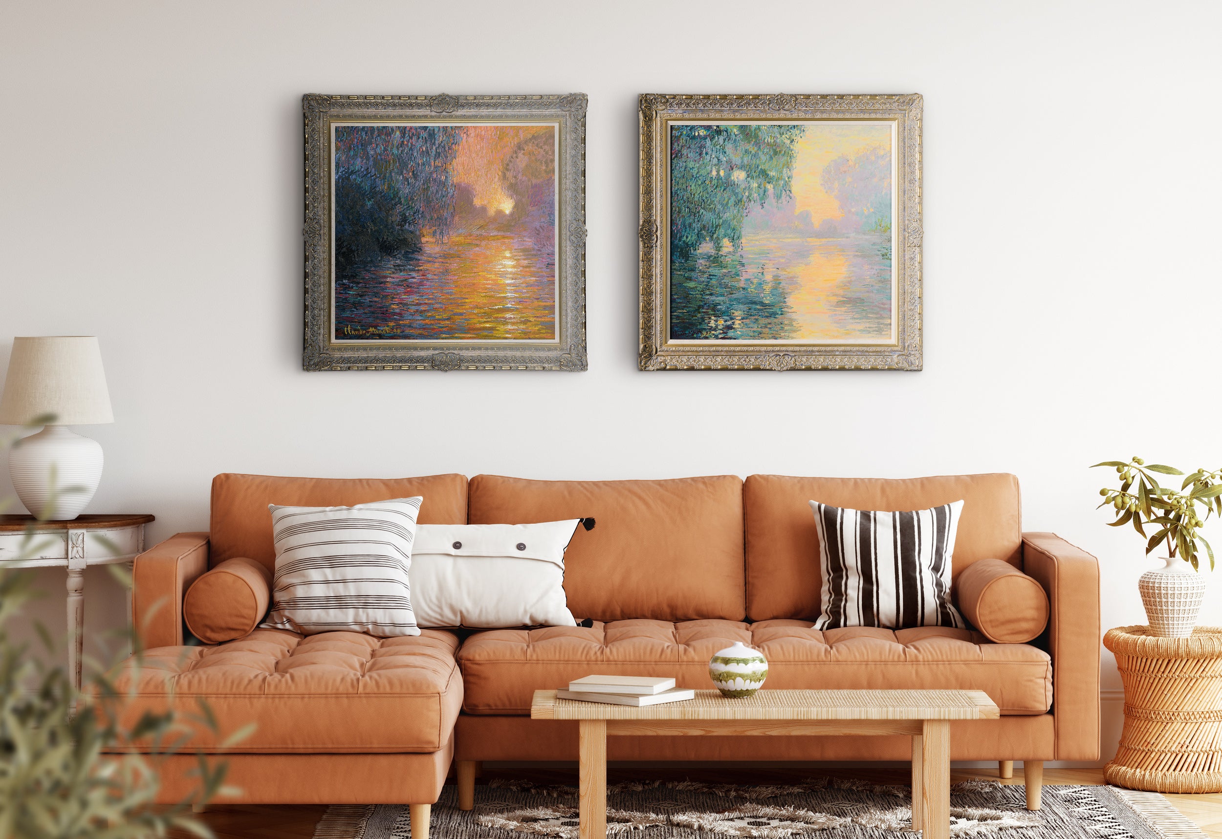 Almost opposite in colour and light to its partner 'Mist On The Seine', this warm toned hand-embellished stretched canvas also comes framed in classical pewter grey, moulded from an original French 18th century design and made from sustainably sourced wood. To read more, click here.