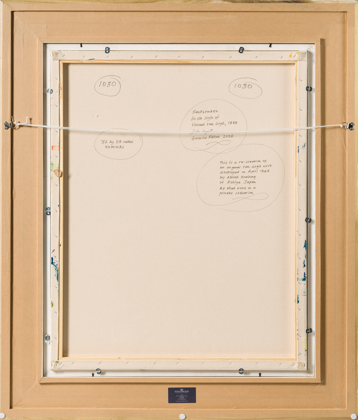Once lost forever to history, this version of Sunflowers, distinguished by its vivid blue background, was owned by Koyata Yamamoto, the painting was hung at his company’s headquarters in Tokyo. In May 1945, US air raids on Tokyo led to the destruction of the painting, which was later confirmed as one of the most prominent and significant artworks destroyed in World War II. By studying the few existing photographs of the artwork alongside notes Van Gogh left in letters to his brother Theo, Myatt was able to faithfully recreate this lost painting and share its bold colours with a new generation – completing the Sunflowers series once thought gone forever.