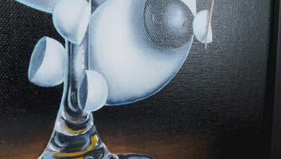 In a traditional still-life composition creating a visually appealing and balanced image, “Porn To Be Wild” is vignetted by a classic and simple black background. The bold colour is incredibly punchy, completely focussing the attention on the tantalising tipple and scene at hand. Ever a fine artist, this piece has been painted in vivid oil paint with the incredible craftsmanship we have come to expect from skilled still-life painter, Peter Smith. For artist the challenges when creating this pieces was to fit all the elements into one image while adding dancing movement.