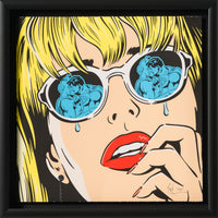 Inspired by his love of 1950s comic books, Rich Simmons combines classic pop art and modern street art to create artwork which provokes thought and challenges expectations. In ‘Reflections (Between the Capes)’, the artist frames his well-known image of Batman kissing Superman as a reflection in the woman’s glasses. He builds a narrative using the composition of the piece, showing us the scene from her perspective.