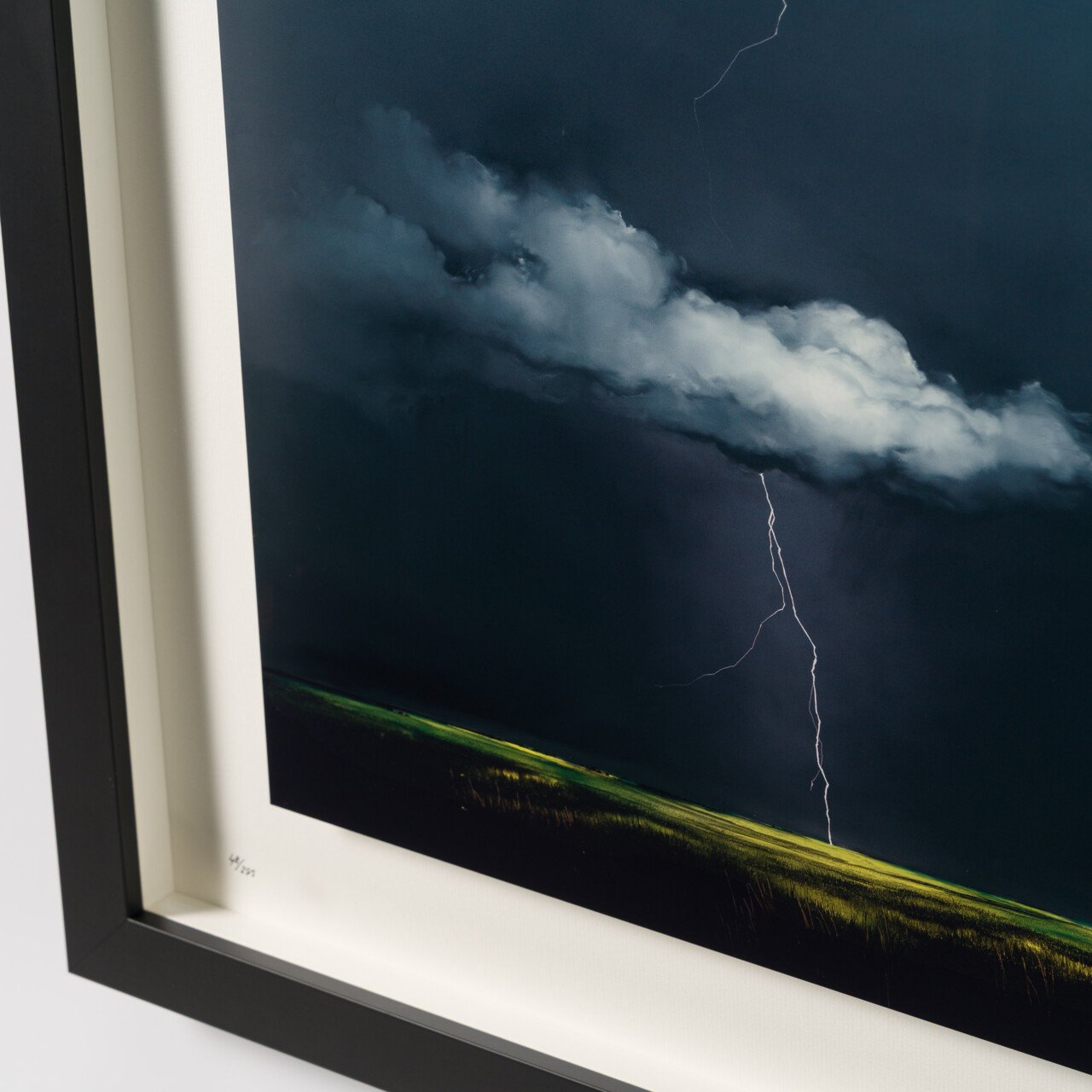 Inspired by his travels in the UK, especially the family trips to Scotland, in ‘Tempest's Touch’ Rowan captures the beauty of fleeting moments. While the contrast between light and dark, stillness and movement is perfectly conveyed, the artwork is about change and feeling the moment. Portraying the constant state of transformation landscapes go through, evolving on the hour, season and weather, Rowan captures not only the place itself but the feeling of standing within it, watching as the sky darkens or the wind changes direction.