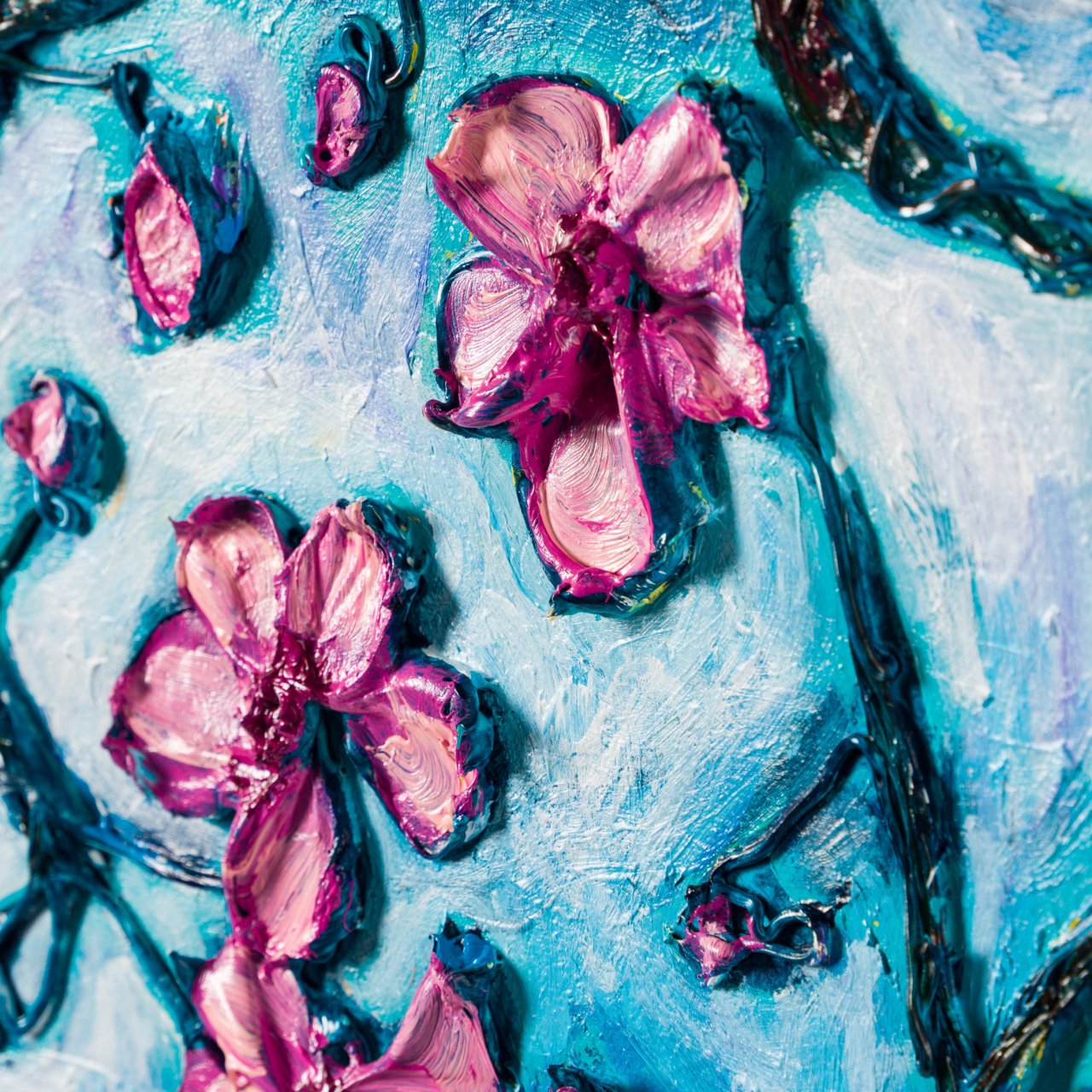 Drawing inspiration from the transformative journey of nature trough the seasons, 'Cherry Blossom Movements' is an expressive, vibrant original artwork portraying a flower’s delicate yet resilient beauty.