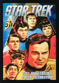 Curated from different comics, books, and TV series done based on Star Trek, this giclée on stretched canvas is hand-signed by William Shatner.