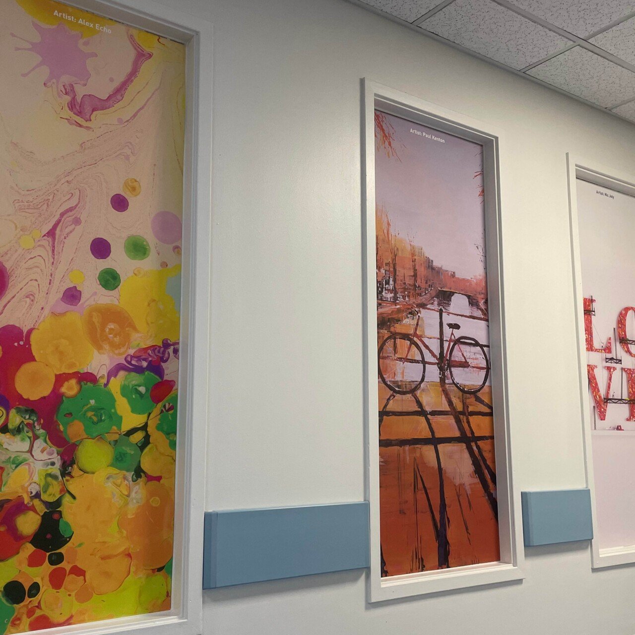 Our ‘community corridor’ art installation at Birmingham Women’s Hospital is on display in their antenatal clinic. This specially curated selection of art is designed to promote a sense of hope and peace for all patients, visitors and staff.