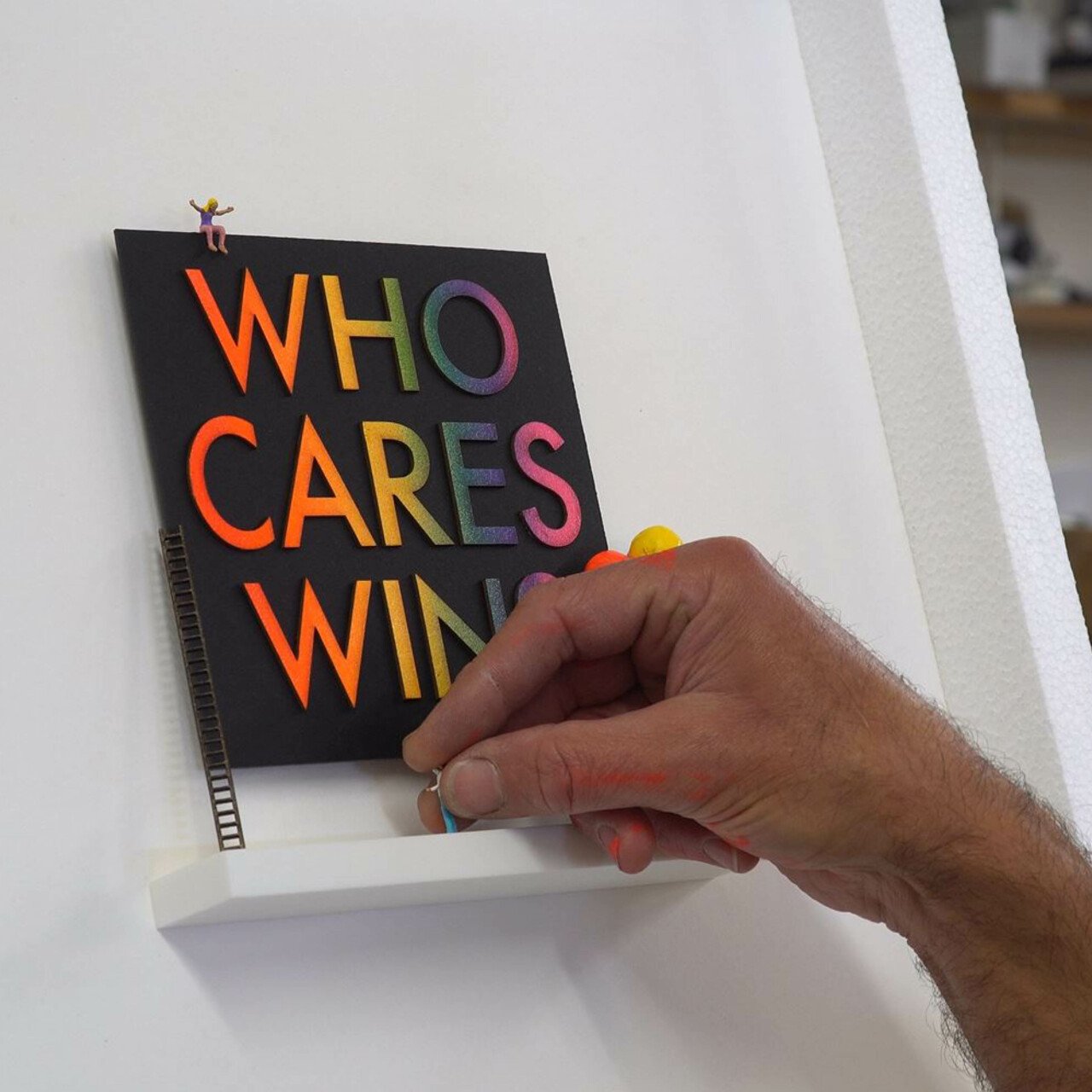 Featuring a heart-warming scene that showcases the compassion of healthcare staff, this handmade 3D wall sculpture carries the message 'Who Cares Wins', a play on the SAS motto 'Who Dares Wins'. With hand-sprayed lettering and Nic's signature miniature figures, this limited-edition artwork is available in an edition of 2020 to mark this historically significant year.