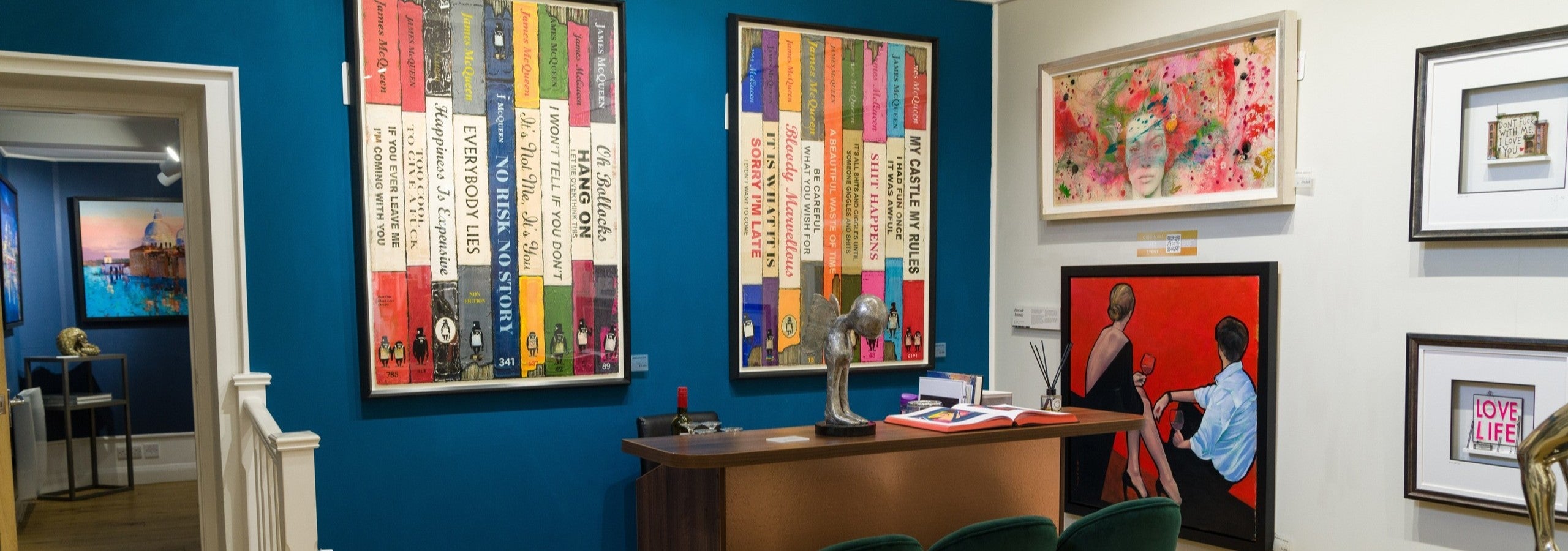 Spread over two spacious floors, this modern artspace boasts a VIP lounge, cutting-edge viewing room and even a bar area! Located within the Grand Arcade shopping centre on Cambridge's historic St Andrew's Street, where our neighbours include Clarins, Hobbs, John Lewis and The White Company, it boasts a fantastic display of contemporary art, and knowledgeable staff who can talk you through your needs.