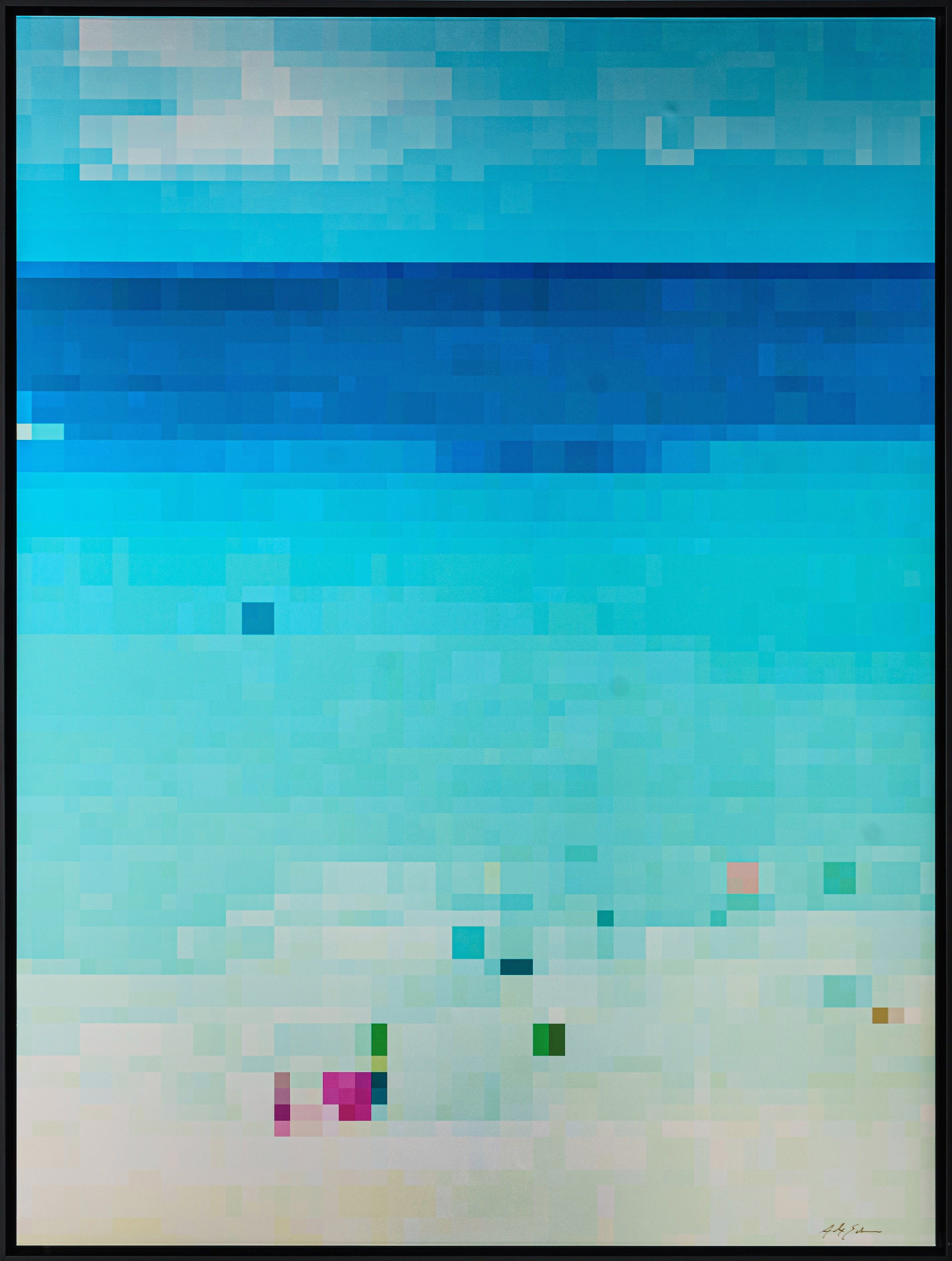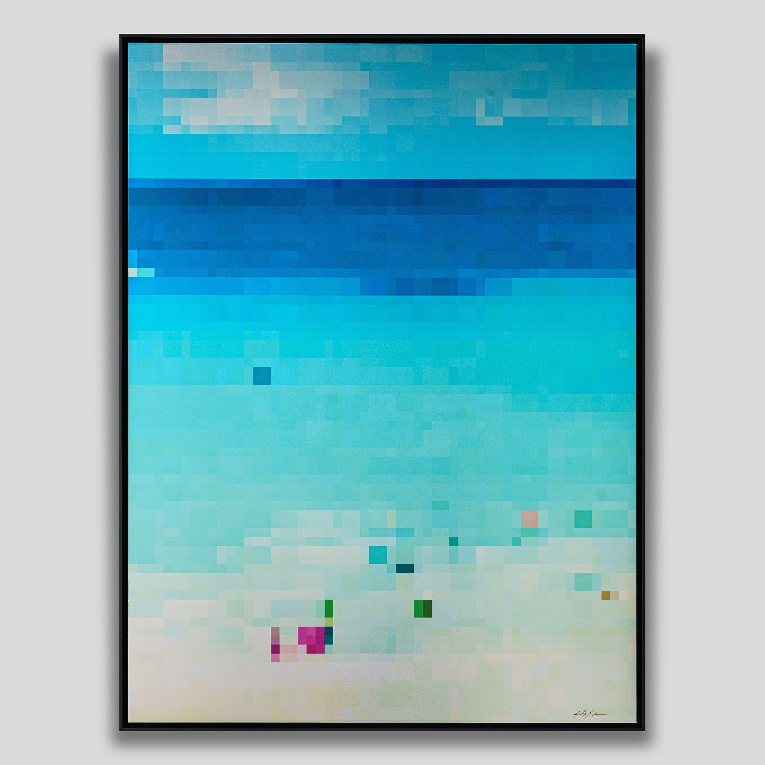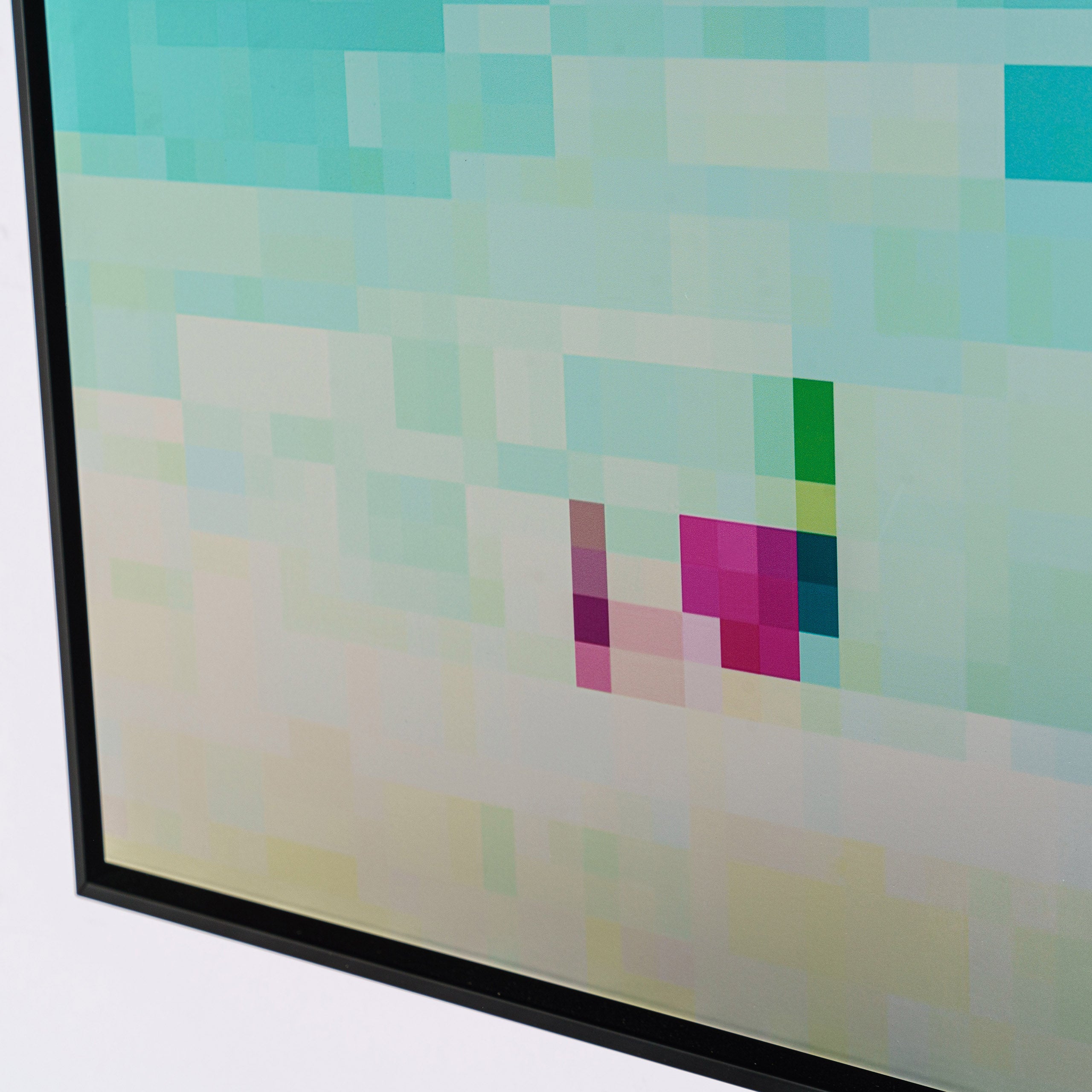 Here, Alex Echo has combined his abstract and colourful artistic approach with digital media to create this contemporary and abstract artwork. Using vibrant squares as pixels, the well-known image has been distorted but remains recognisable; commenting on the role of images in the digital age.