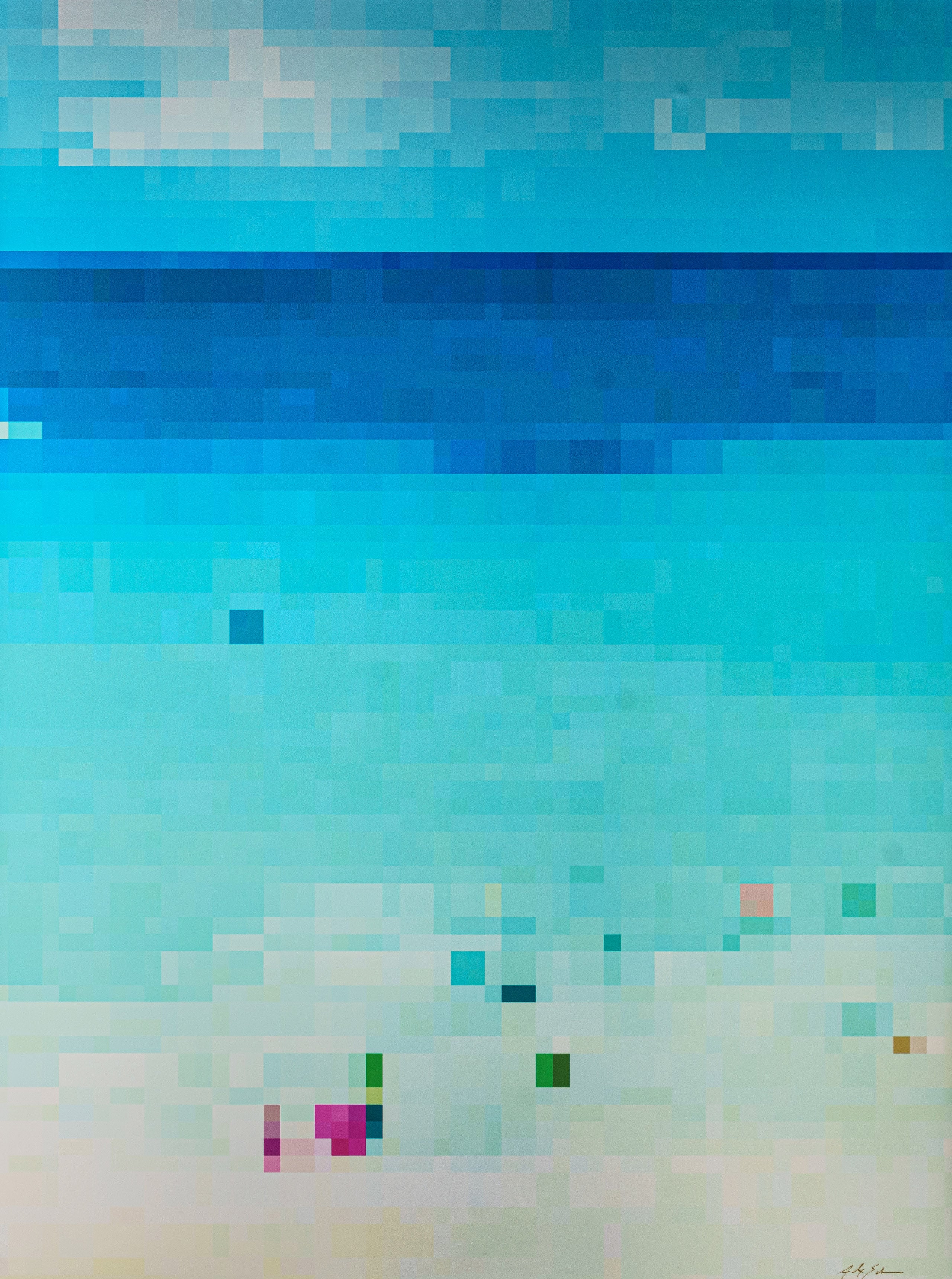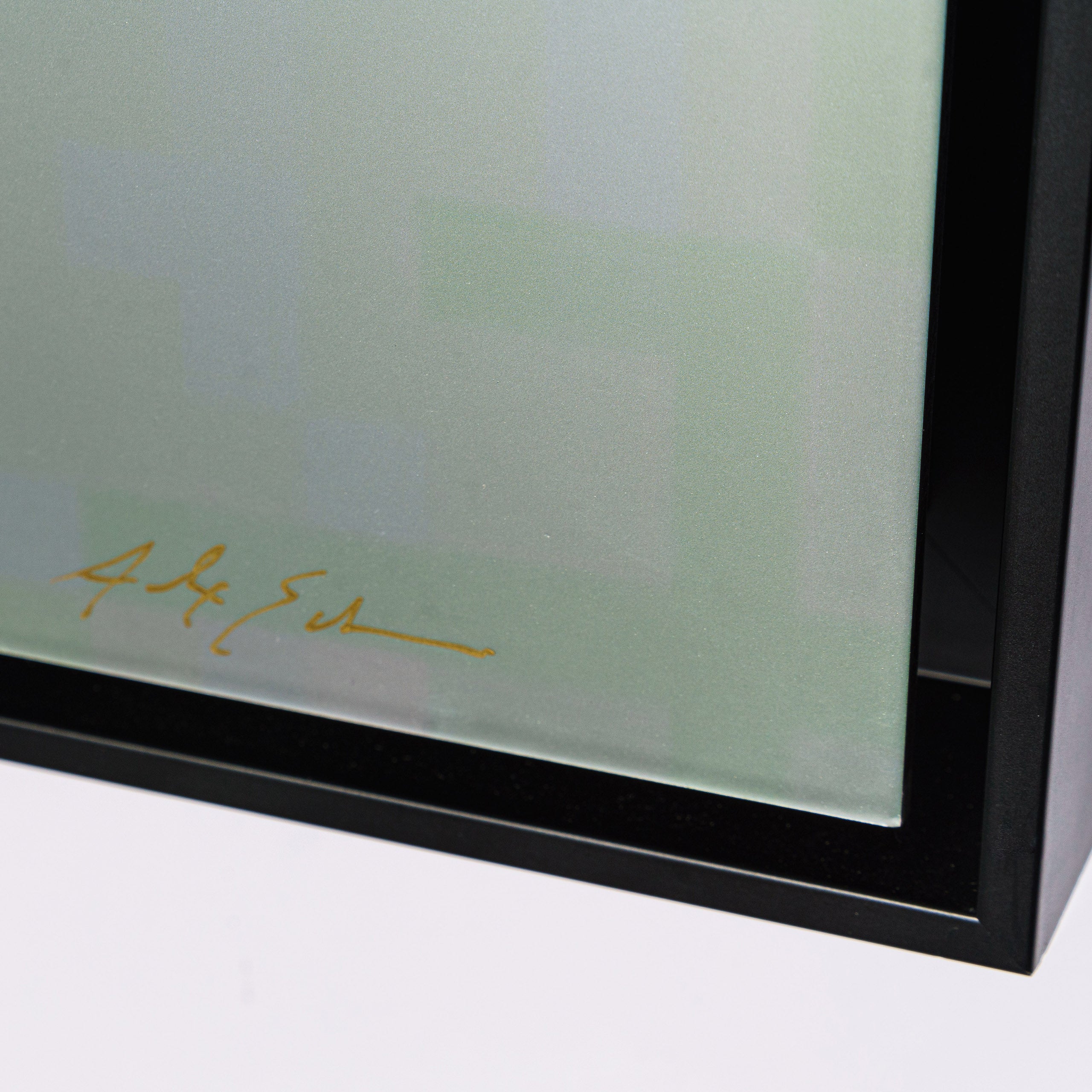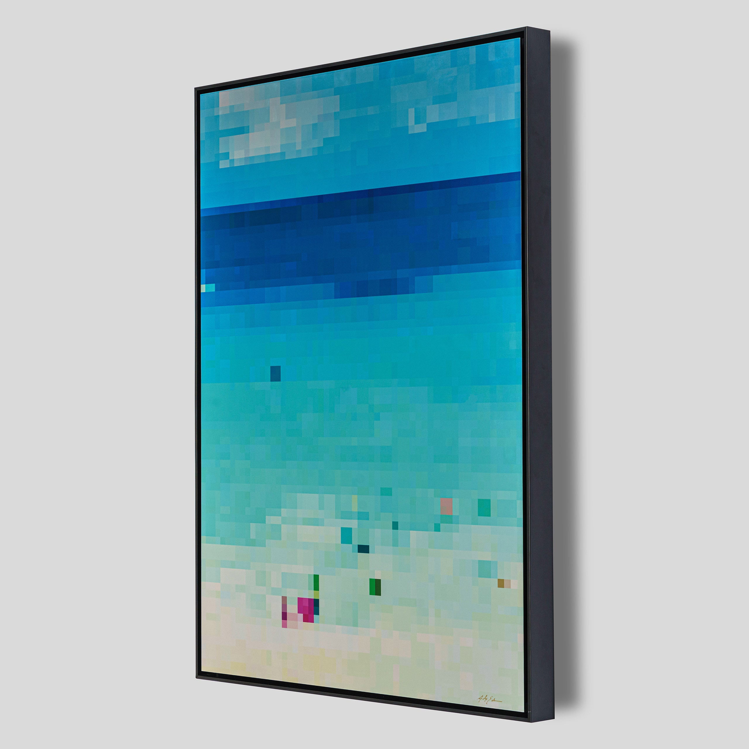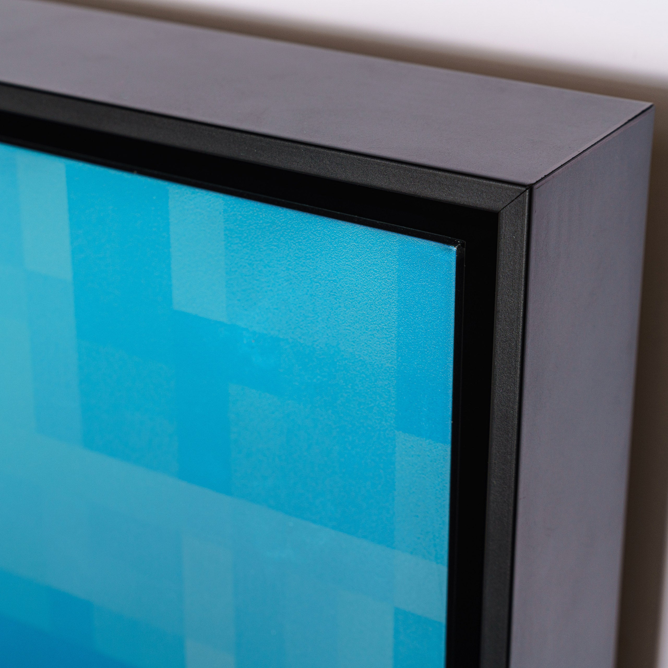 Here, Alex Echo has combined his abstract and colourful artistic approach with digital media to create this contemporary and abstract artwork. Using vibrant squares as pixels, the well-known image has been distorted but remains recognisable; commenting on the role of images in the digital age.