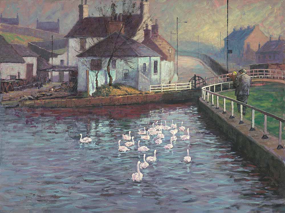 Alexander Millar took inspiration for this piece from an old photo of the Forth and Clyde canal in an area just outside Glasgow called Maryhill, and also his memory of being in his Dad's arms whilst he threw bread for the birds to eat.