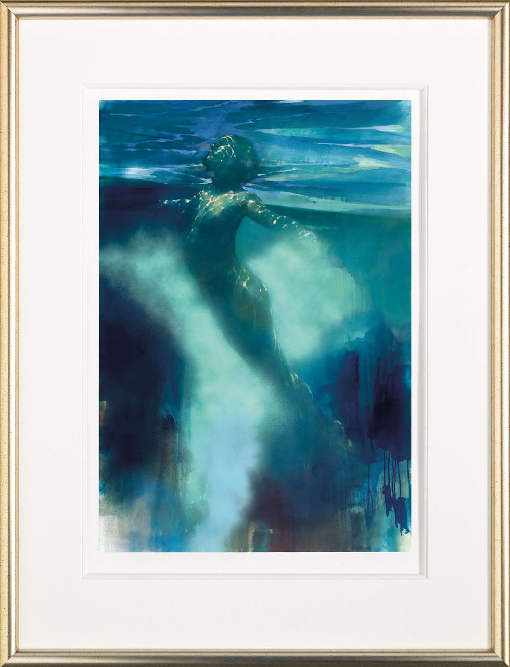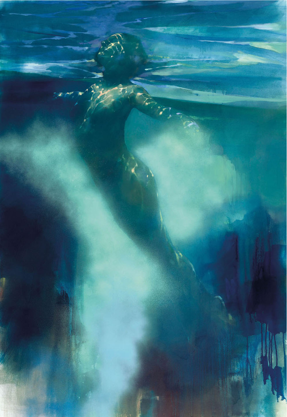 Bill's underwater figures are accentuated by the cool, dark tones of the ocean reef, with their poses depicting a freedom from the constraints of gravity.
