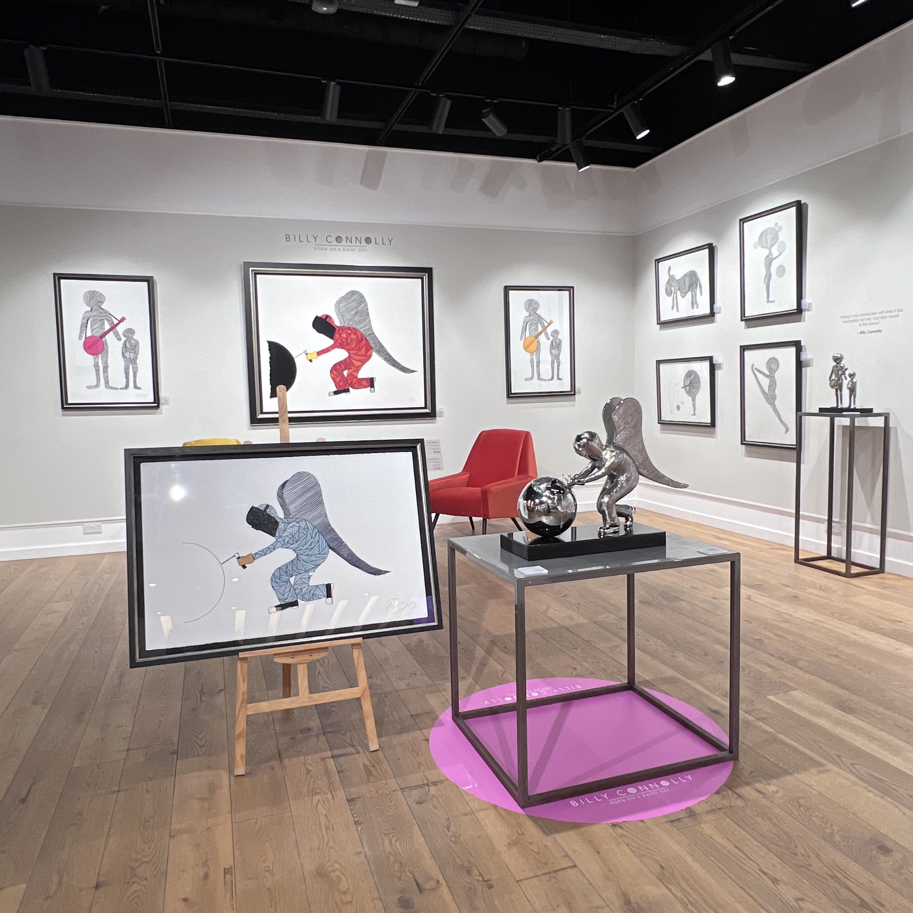 Charmingly and unmistakeably witty with distinctive bold lines, as featured by The Times and documentaries including Billy Connolly: It's Been a Pleasure, his minimalist artworks have been described as 'poignant', 'funny' and 'enigmatic' by critics. Billy’s art is simplistic, his faceless figures possess an extraordinary self-awareness and humanity.