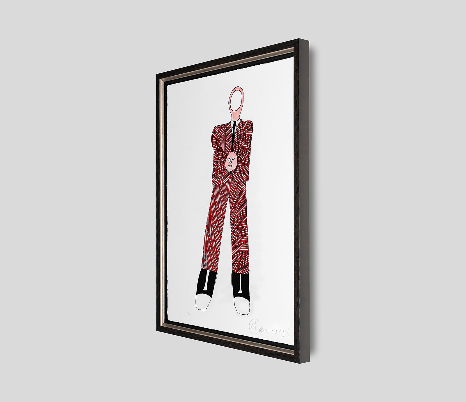 This artwork forms part of the first 2022 instalment of his highly successful collection Born On A Rainy Day. It is replete with dynamic colours that allow his world-renowned figurative artworks to take on new life and meaning. Displayed on 100% cotton deckle-edged paper, float-mounted in a black painted and silver foiled pine frame, this artwork will add a bright and bold touch of musical and comedic history to your home.