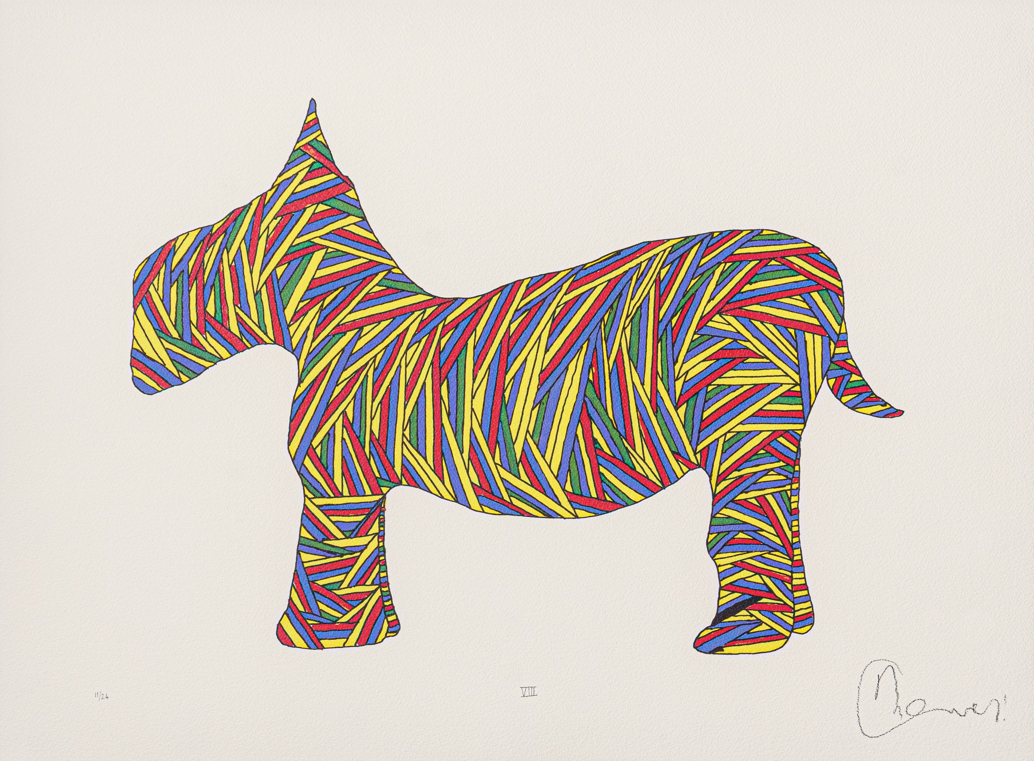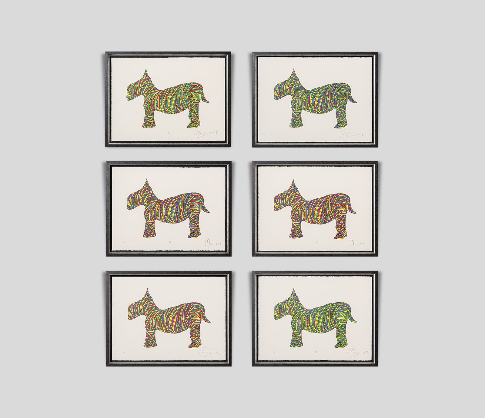 In this extraordinary addition to his collection, ‘Scotty Poser’ returns, but this time with 24 varying colour palettes, each breathing new life and meaning into the hand-signed artworks by Billy. In merging his instinctive and imaginative vibrant hues with Scotland’s most prized pooch, Billy successfully fuses together his two worlds, creating a collection guaranteed to brighten any rainy day.