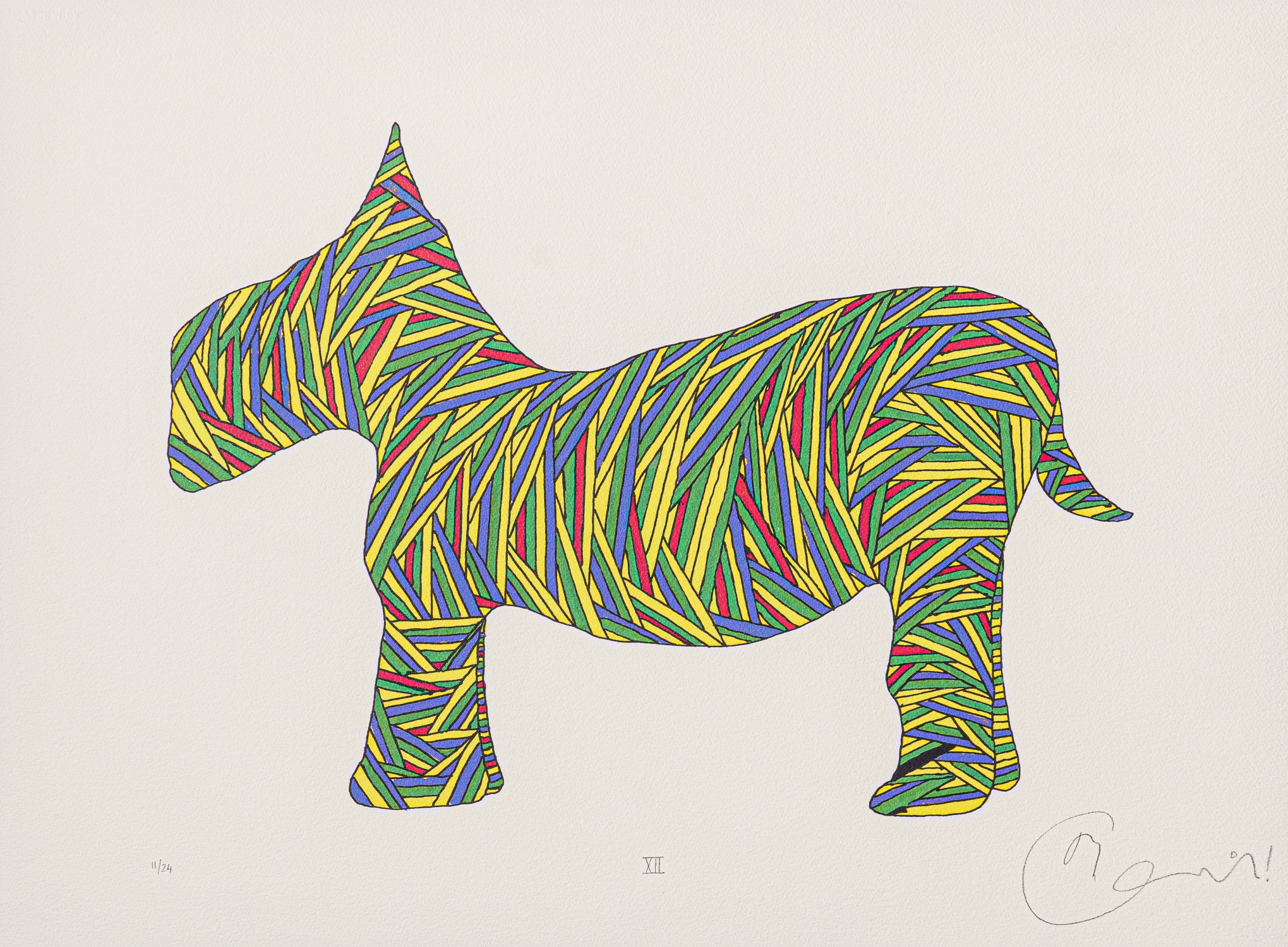 Billy Connolly's first artwork of a Scottish terrier, lovingly referred to as ‘Scotty Poser,’ was one of his first pieces to be fleshed out in colour and was a record-breaking sell out within