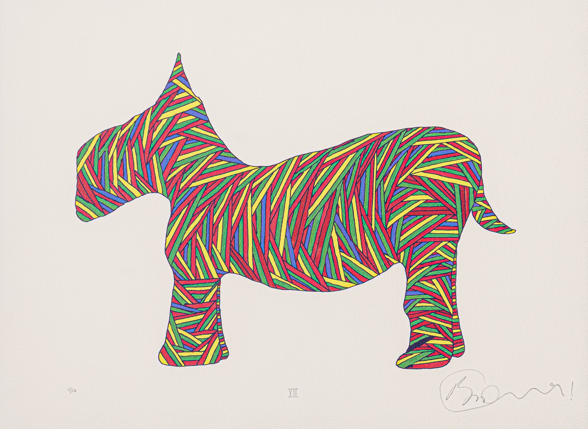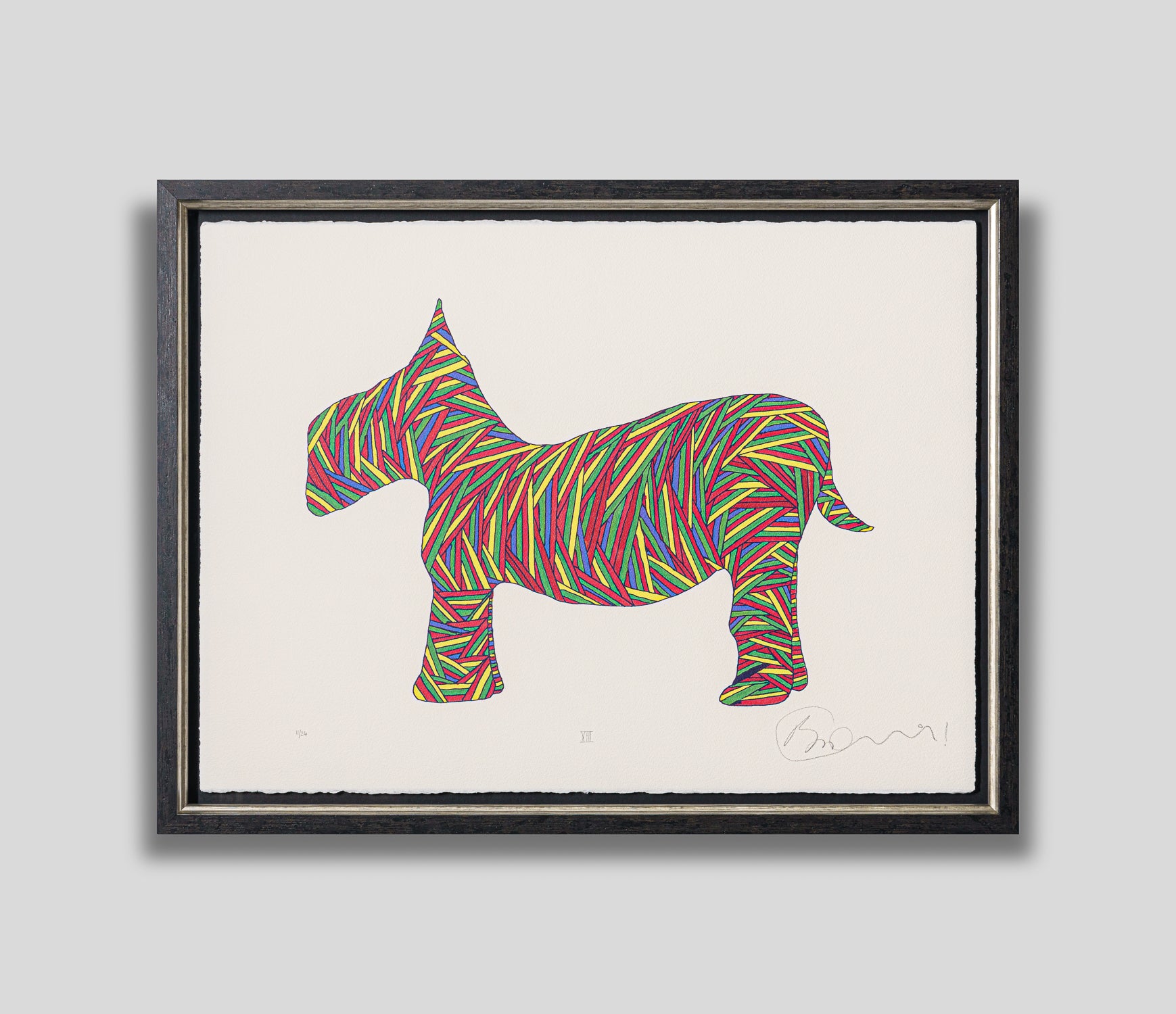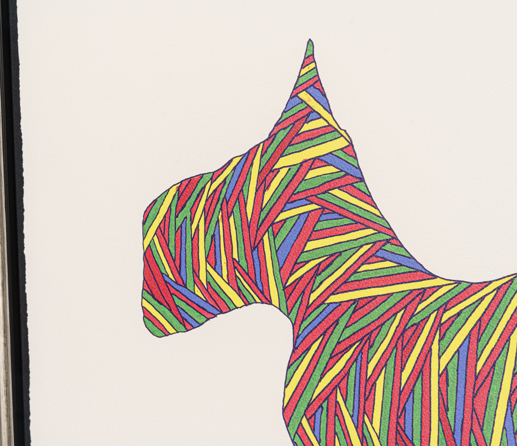In this extraordinary addition to his collection, ‘Scotty Poser’ returns, but this time with 24 varying colour palettes, each breathing new life and meaning into the hand-signed artworks by Billy. In merging his instinctive and imaginative vibrant hues with Scotland’s most prized pooch, Billy successfully fuses together his two worlds, creating a collection guaranteed to brighten any rainy day.