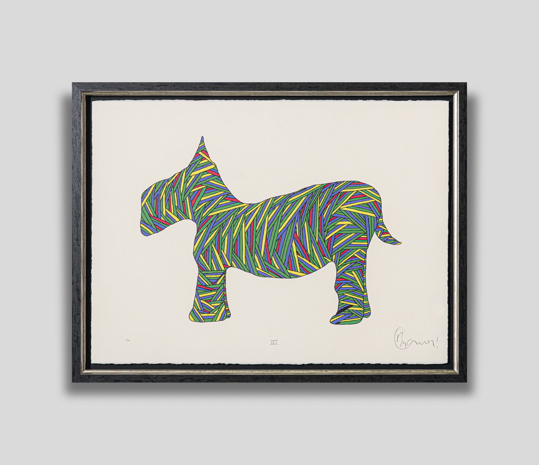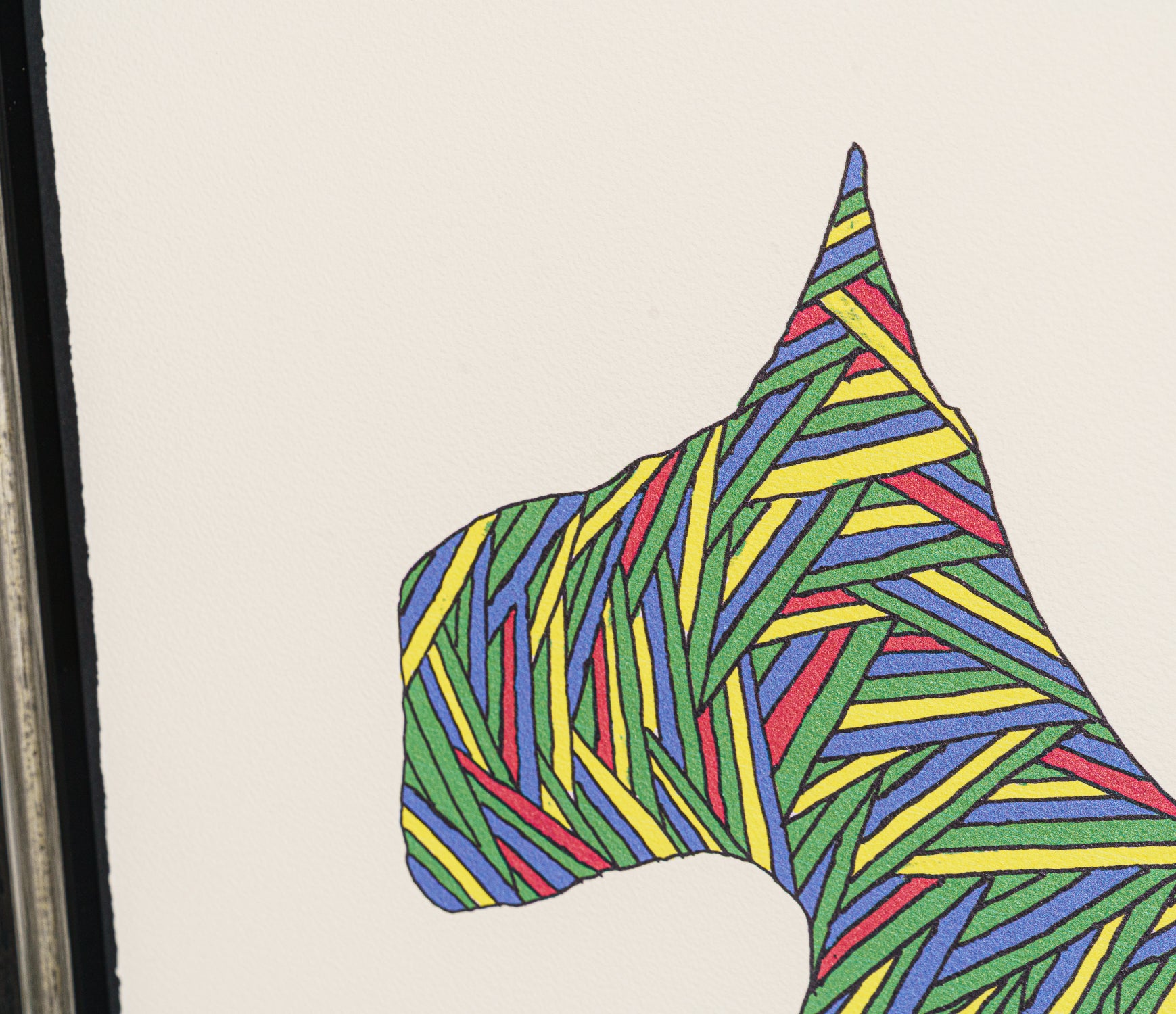 Billy Connolly's first artwork of a Scottish terrier, lovingly referred to as ‘Scotty Poser,’ was one of his first pieces to be fleshed out in colour and was a record-breaking sell out within