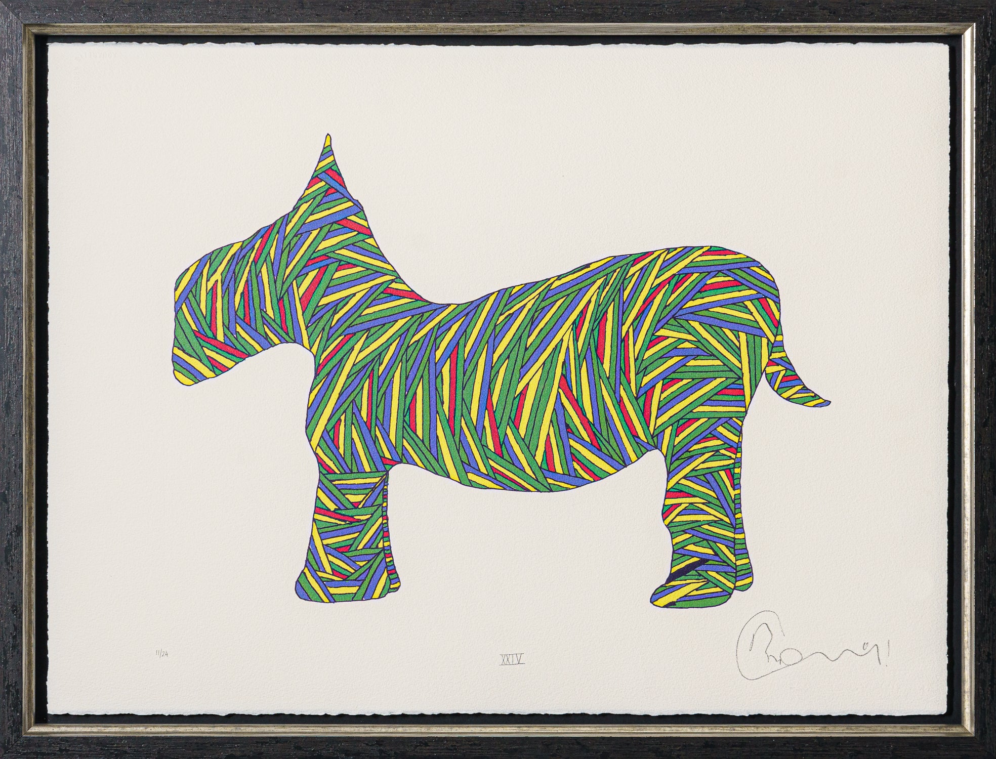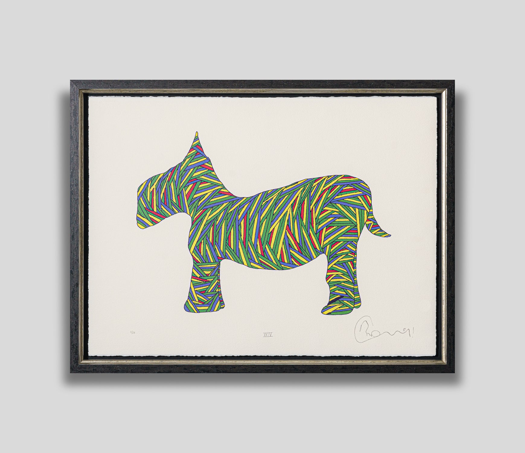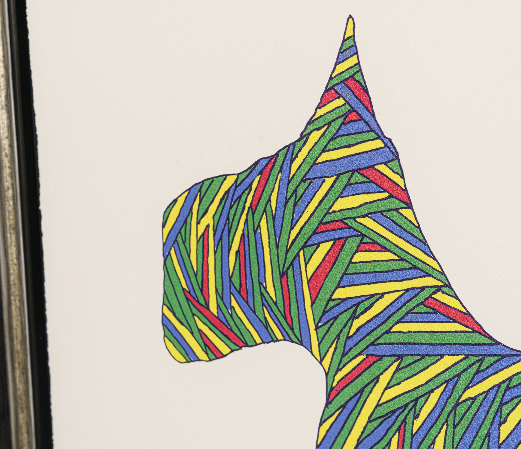 Billy Connolly's first artwork of a Scottish terrier, lovingly referred to as ‘Scotty Poser,’ was one of his first pieces to be fleshed out in colour and was a record-breaking sell out within