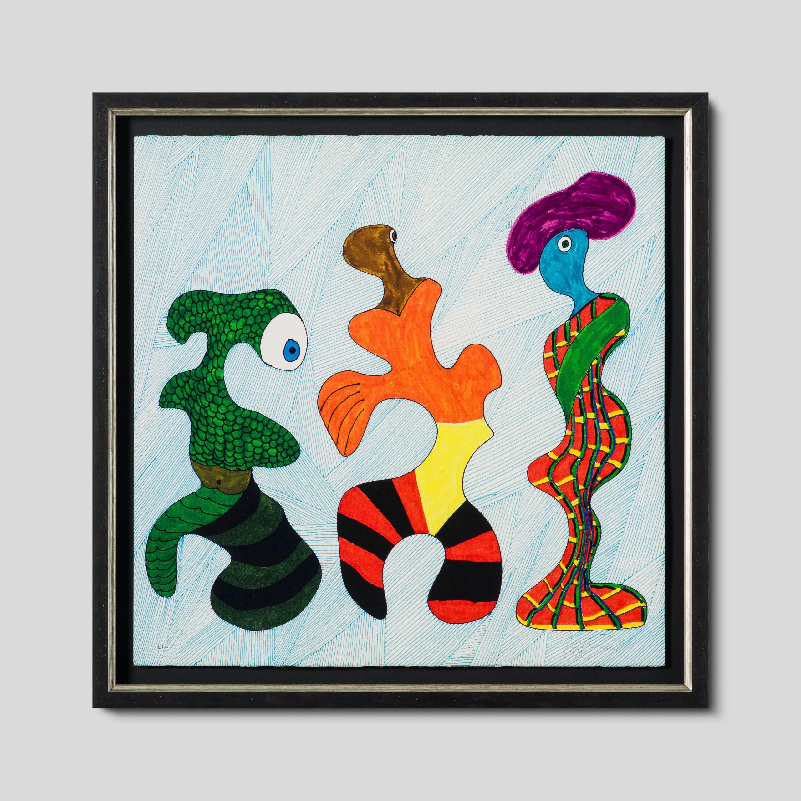 Part of his Born on a Rainy Day - Early Drawings collection, Billy rediscovered this work while sorting through a cupboard in his house in Gozo, Malta. The drawings demonstrate his evolution as an artist, as we see him begin to introduce lines into the background of this piece – a theme common in the forefront of his works today.