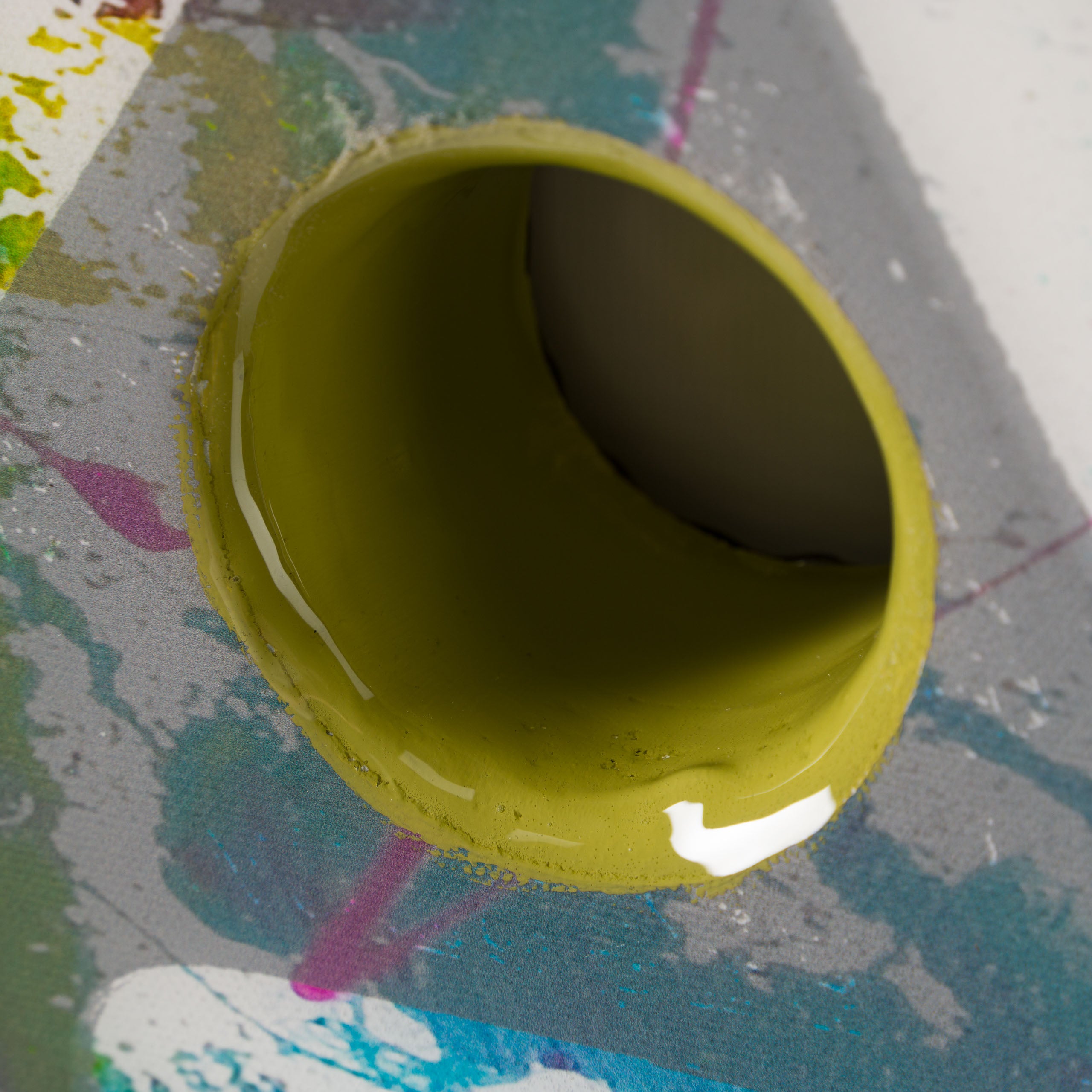 Epitomising the Bisaillon Brothers' interest in mid-20th century pop culture and 21st century technology, this artwork sees the duo combine their techniques and philosophies in a vibrant mosaic of different mediums. These include: resin, acrylic paint, graphic design and code; all of which feature in the above original. The latter involves Michael Bisaillon’s own trinary code which he applies as a comment on the conflict between digital and analogue in contemporary society.