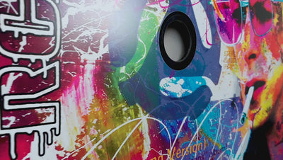 Influenced by pop and street artists like Andy Warhol and Jean-Michel Basquiat, the duo evoke an exciting commentary on the pop culture of today and the mid-20th century. New technology, iconicism, globalisation and social media are given a modern interpretation through digital art, vibrant colours and bold brushwork.