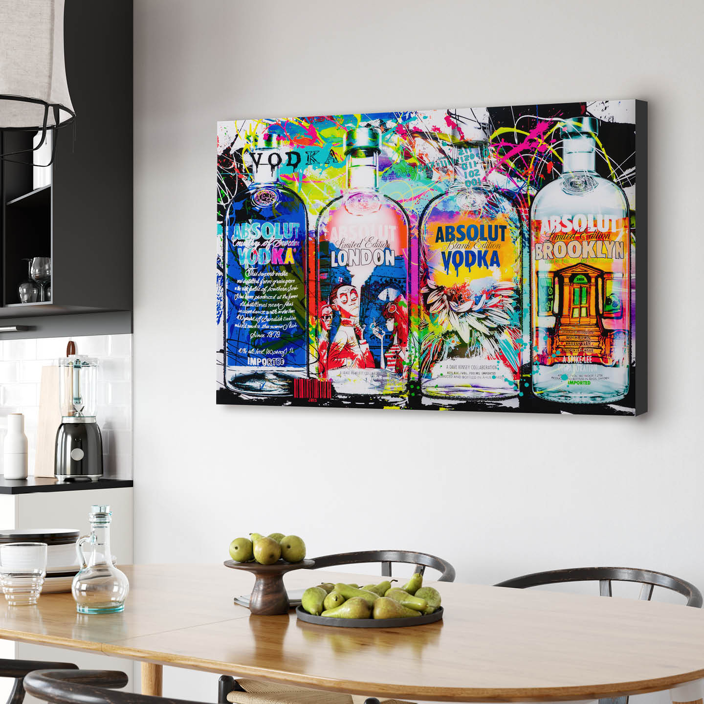 The abstract background echoes 80’s New York City, grounding the bottles in a cultural space so relevant to the artists. A composition of urban wall textures, drips and spray paint, the abstract graffiti backdrop celebrates the street art legacy and its significant influence on modern art. The contrast between gritty textures and clean bottle shapes highlights the transformation of street art into high design.