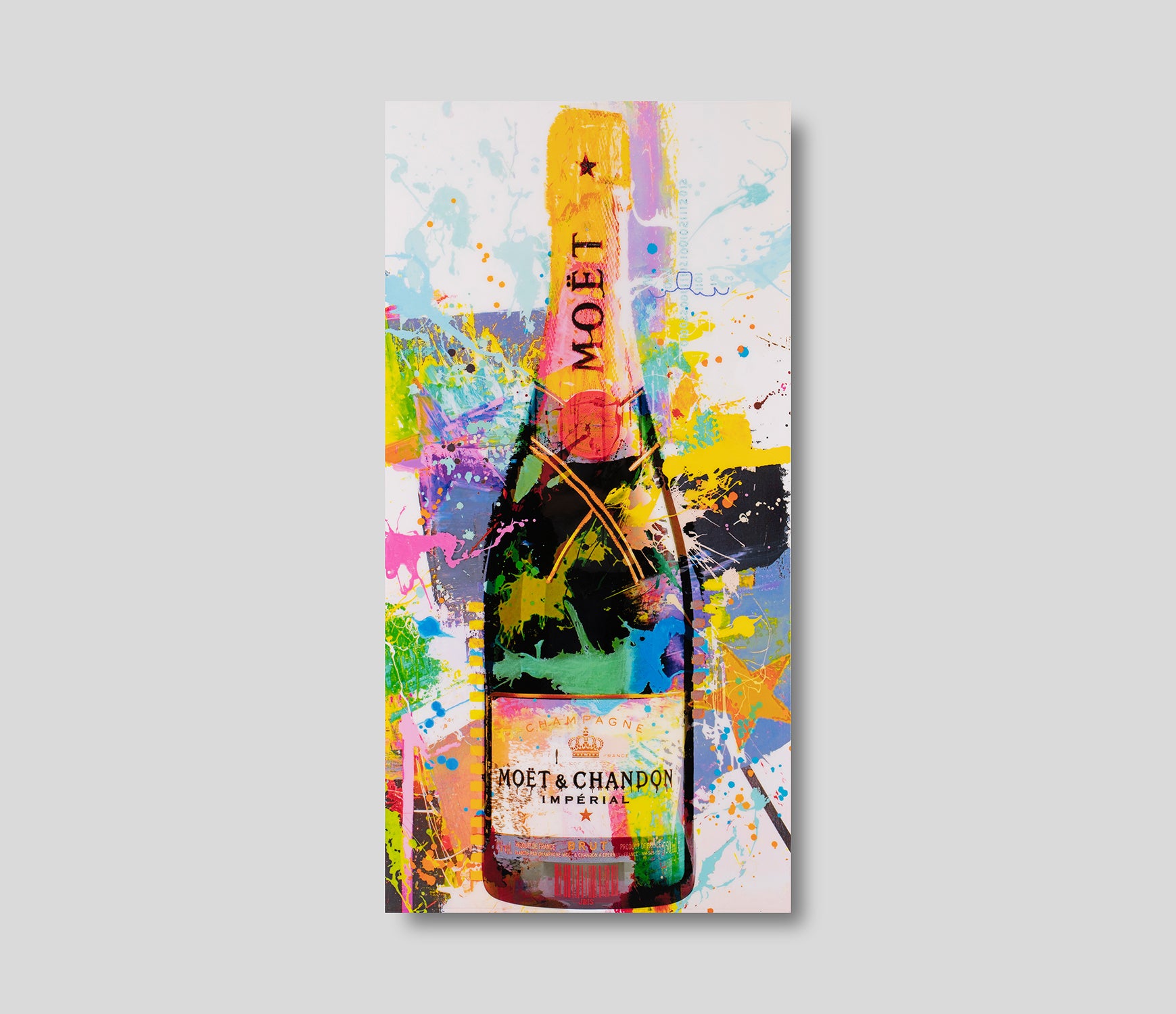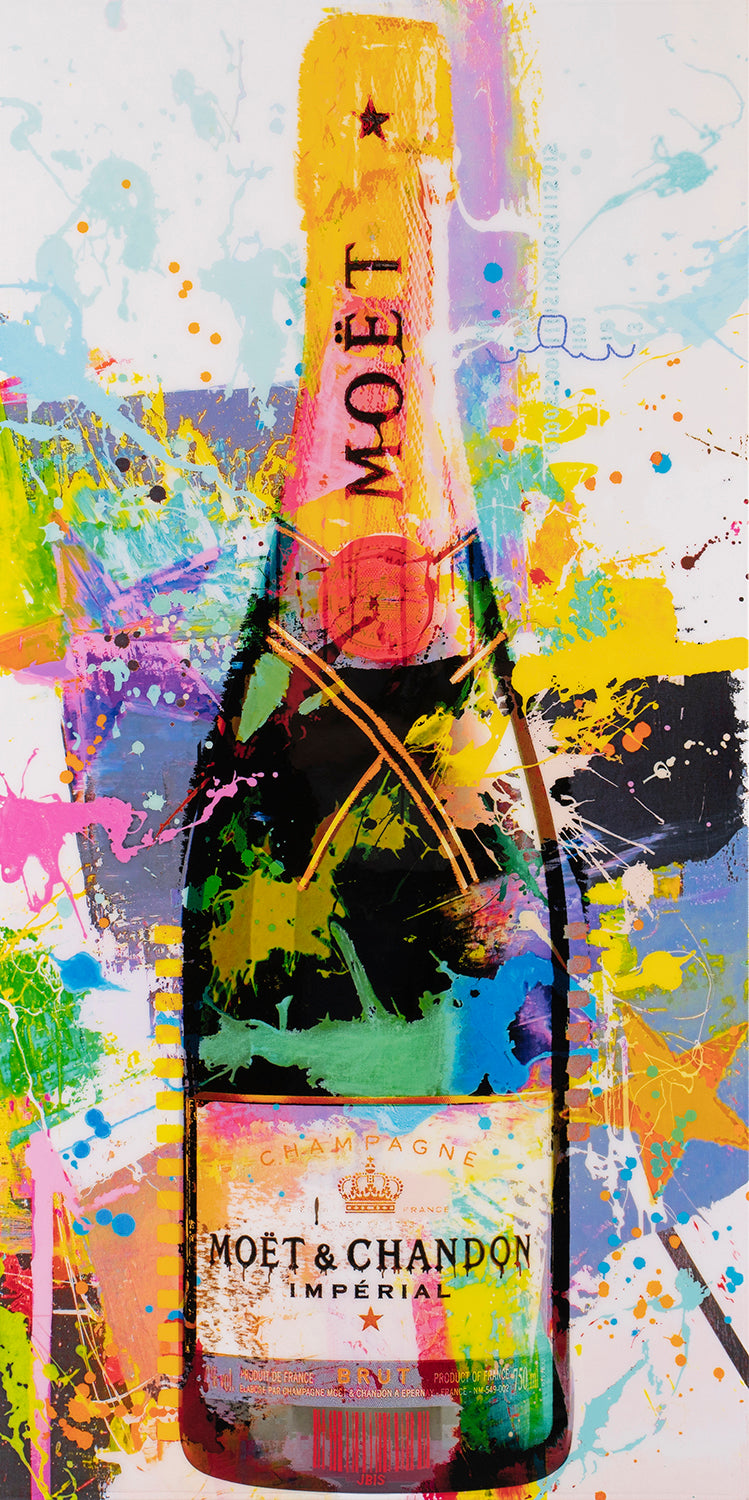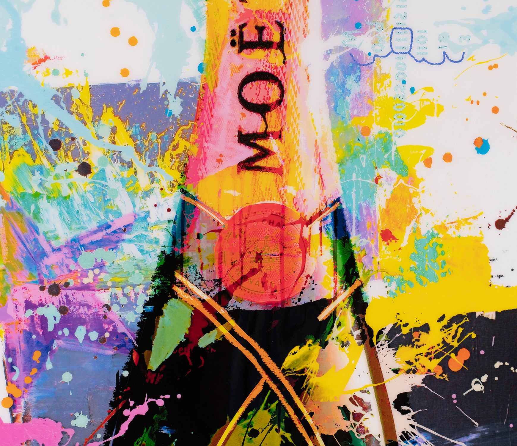Synonymous with wealth and luxury, this artwork uses the iconic imagery of a champagne bottle and combines it with the urban and abstract elements the Bisaillon Brothers are known for. Inspired by Jean Michel Basquiat and Andy Warhol, this bold and colourful limited edition forms part of the Bisaillon Brothers' Urban Fizz collection - the first ever limited edition release from the duo. The brothers' original artwork is painted using spatulas, squirt bottles and by splattering paint from the outer caps of spray paint cans, and this boxed canvas captures the essence and texture of the original artwork with a gloss resin finish.