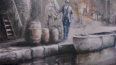 Inspired by a visit to the Black Country Living Museum in Dudley, Bob Barker pointed his camera when looking over the canal imagining a new piece of work. The scene took Barker back in time; he says it was like ‘dropping back into my childhood with cobbled streets, mill houses, trying on flat caps, eating fish and chips on a bench’.
