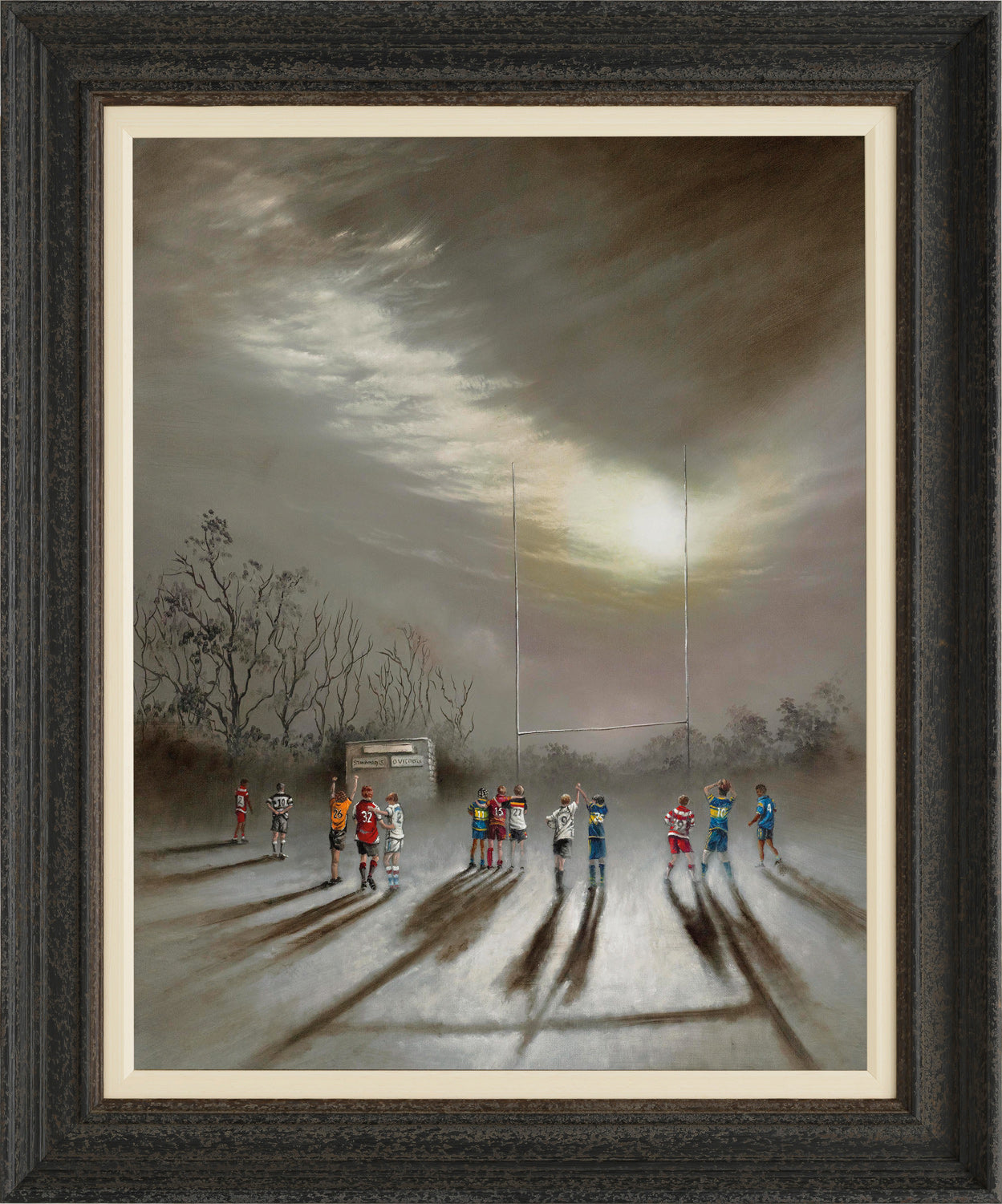 The painting features Will alongside 12 renowned Rugby League players, all of whom started at Stanningley Amateur Rugby League Club and all of whom have co-signed this special charity edition.
